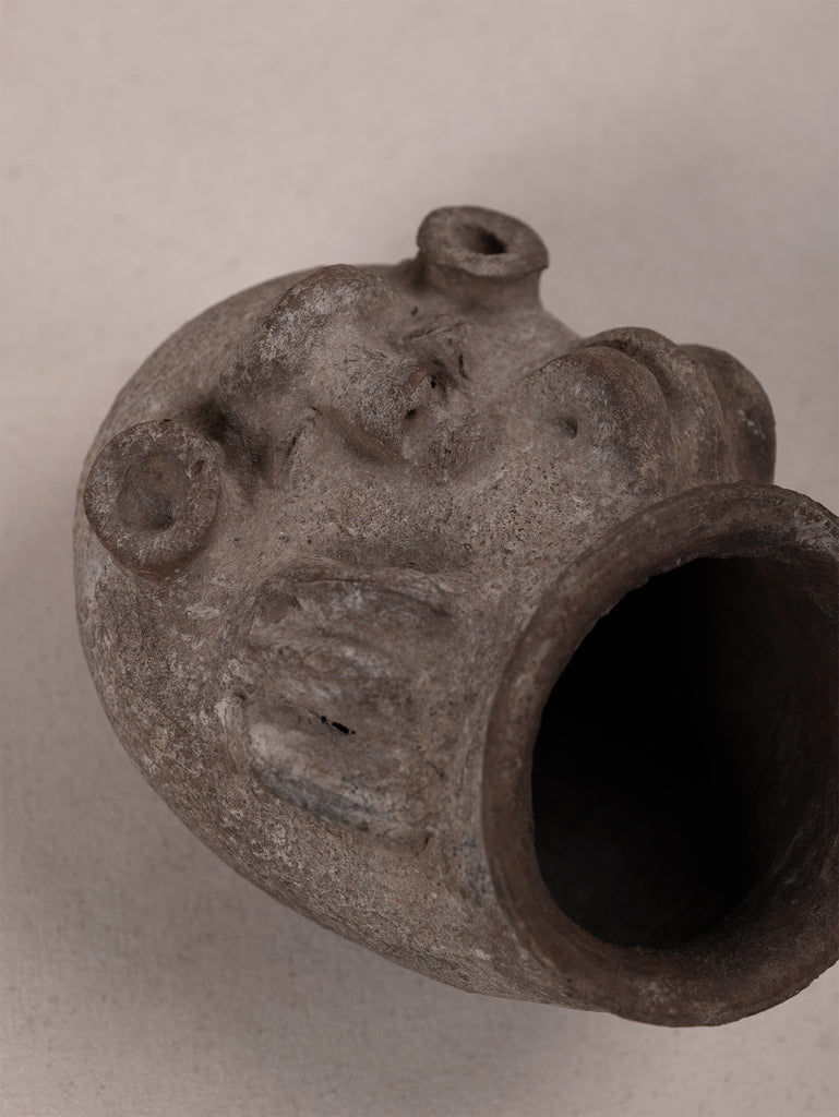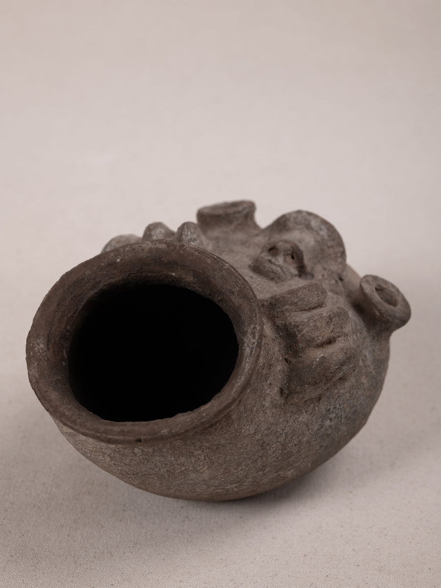 This anthropomorphic terracotta vessel from early 20th-century Nigeria carries a presence that is both grounding and poetic. With its sculptural form and stylized relief details, it tells a story of craftsmanship deeply rooted in tradition and culture.