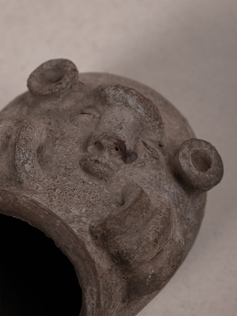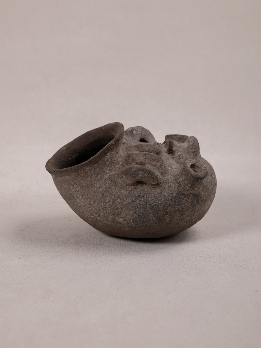 Handcrafted from terracotta, the bowl’s textured surface and organic lines evoke a sense of connection to the earth, while its anthropomorphic features bring a quiet vitality to the piece. In original condition, it retains the marks of its creation and journey, a testament to its authenticity and enduring beauty.