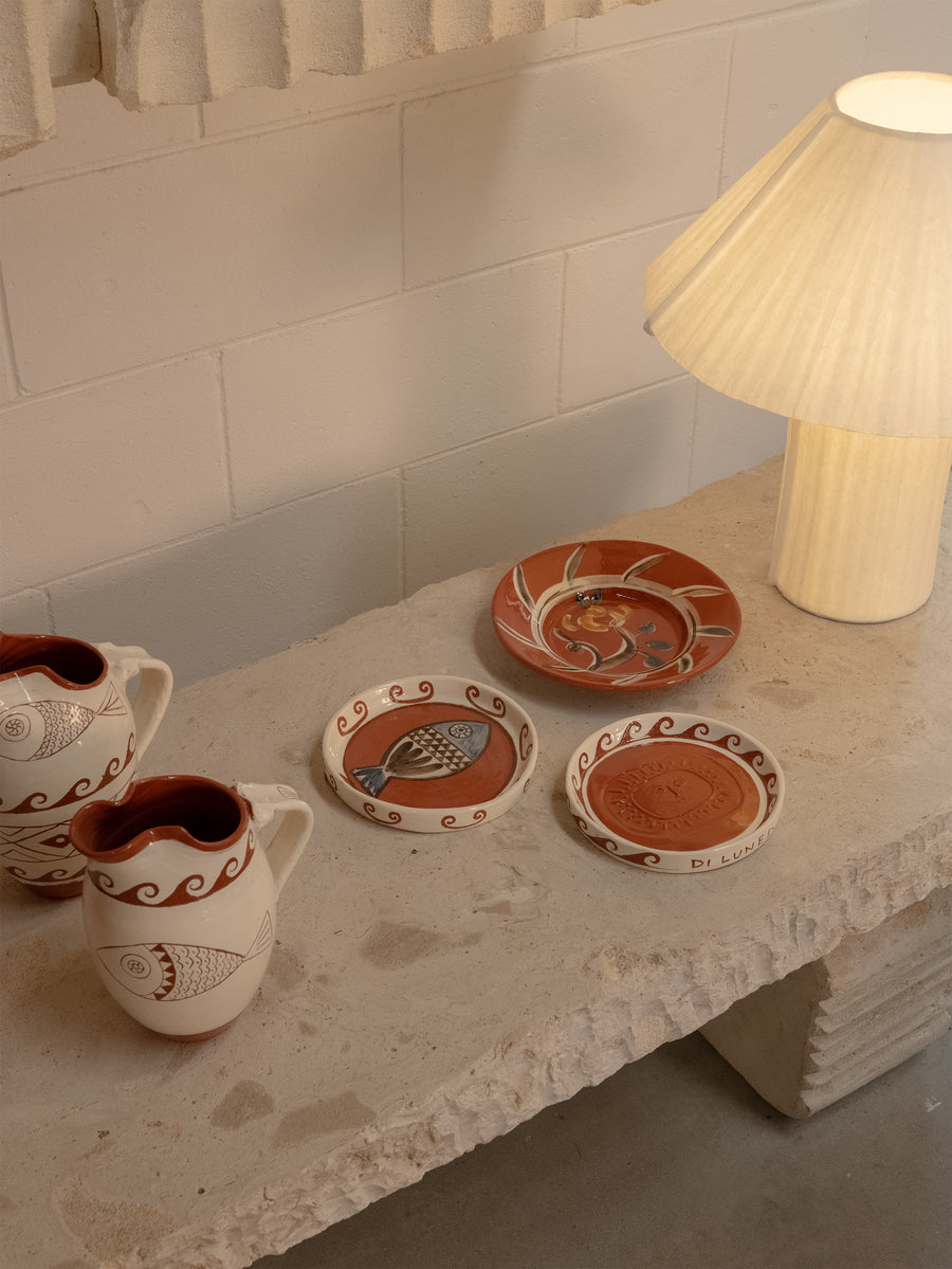 Crafted from fine terracotta, ceramics by Di Lunedi are shaped and refined over several days, giving each piece its own distinct character. The process of hand-building, paring back, and smoothing the clay creates subtle textures and natural irregularities that make every plate unique.