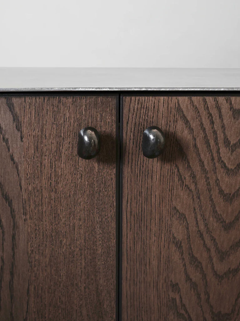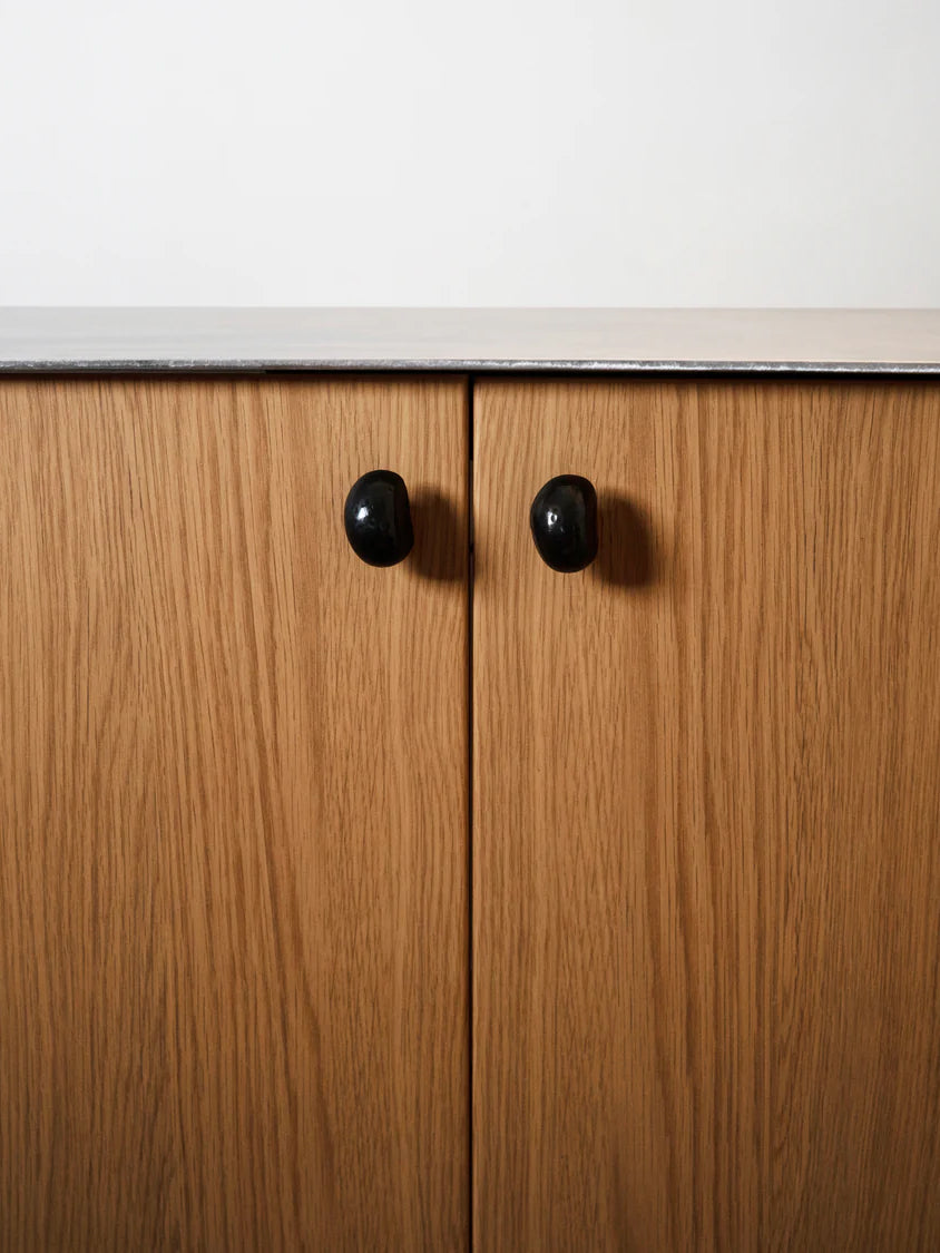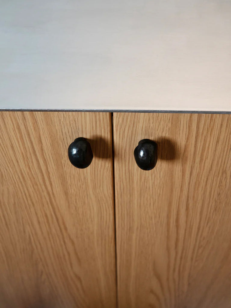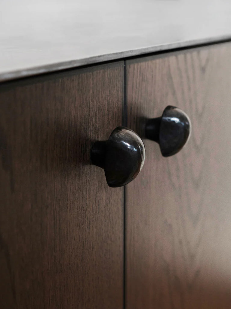 Originally shaped by hand by Danish artist Rebecca Hein, the silhouette carries the impression of the human touch. Each knob is cast in solid bronze using the traditional technique of sandcasting, then hand-polished to a soft sheen. Variations in surface texture, including small blackened spots and natural grain, are inherent to the process, and celebrate the uniqueness of every piece.