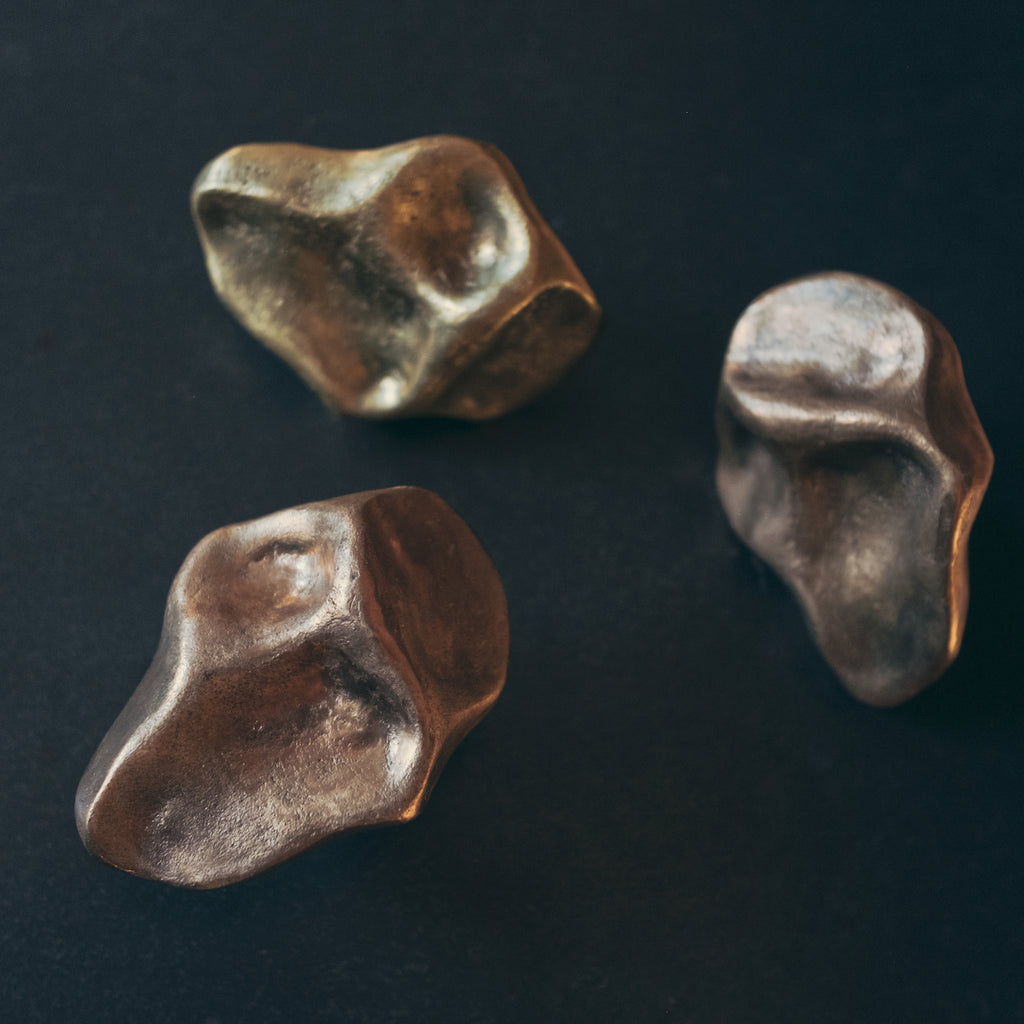 These objects are designed to be comfortable to touch; with their soft shape they fit perfectly in your grip. Made of solid brass or bronze which will serve you for a lifetime with a living finish, meaning that as the product ages, it will naturally develop a darker colour due to oxidation and create a beautiful patina.