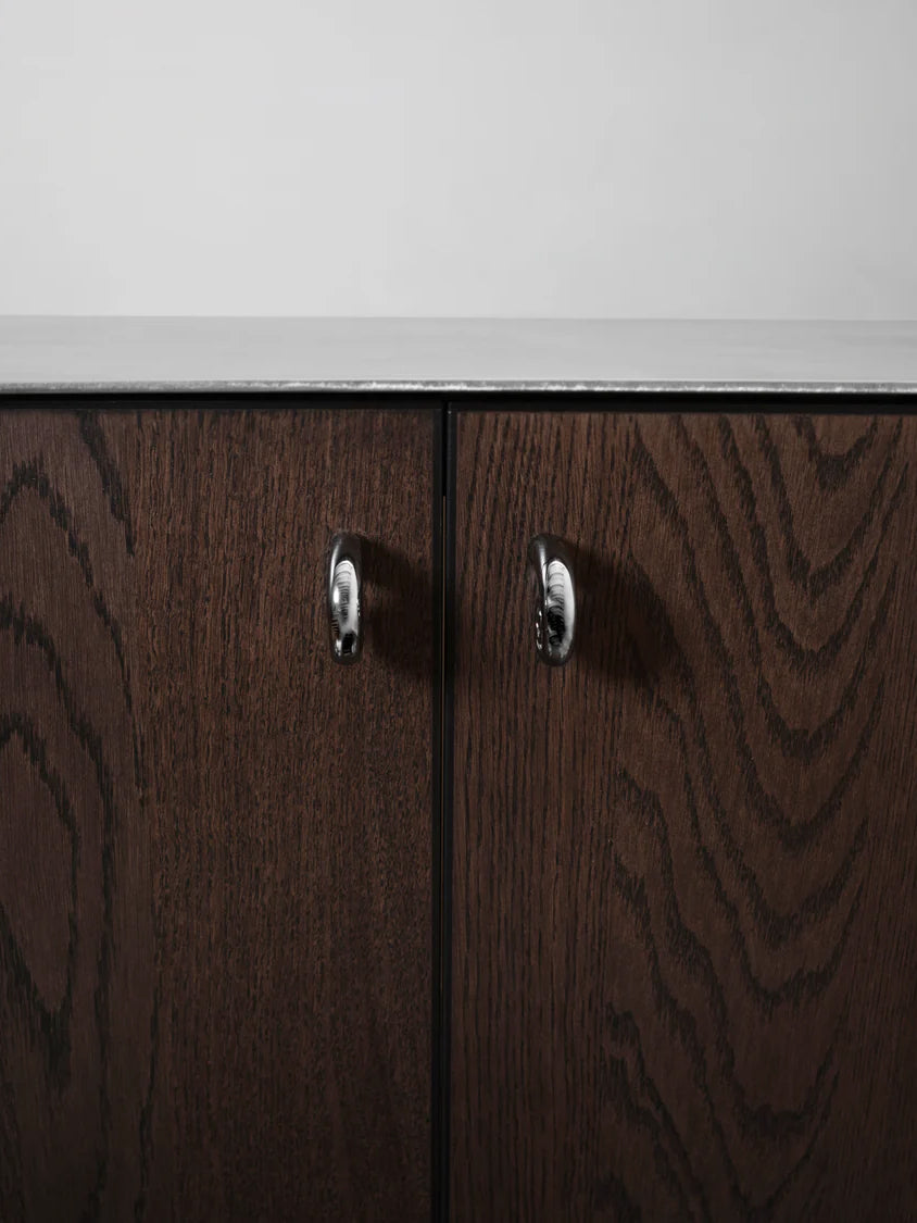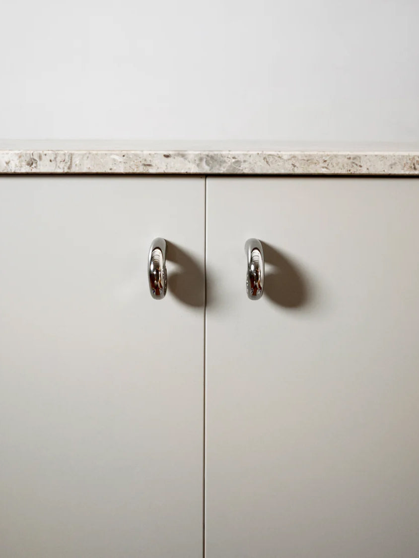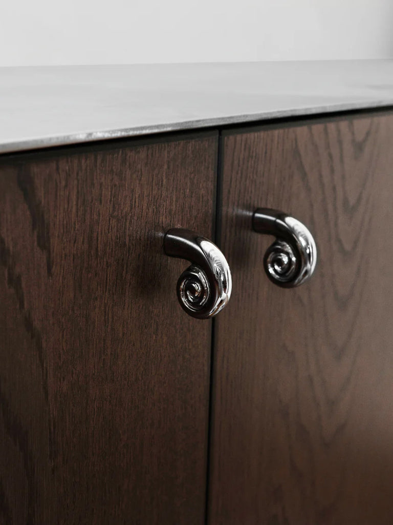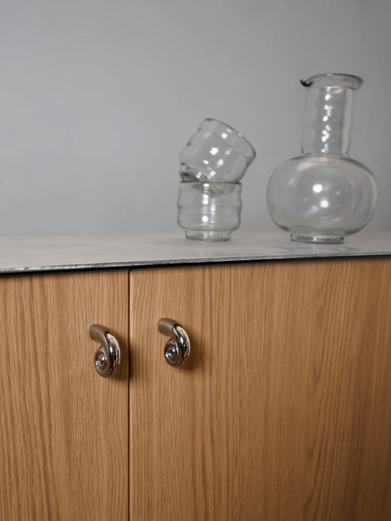 Originally shaped by hand by Danish artist Rebecca Hein, each piece reflects the warmth of its handmade origins. Cast in solid metal using the age-old sandcasting technique and finished by hand, the surface reveals subtle variations, from fine grain to darkened specks, that speak to the individuality of every knob.