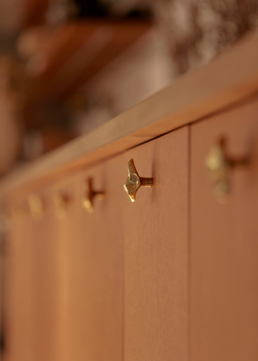 The Soft Pinch small knob is the first design in EVAANNA's 'Pinch Collection', with its graceful utility this knob adds refinement to your home. Because of its asymmetrical nature it looks great being used repetitively, but you can mix it with the other small knobs of the collection for an even more original look.