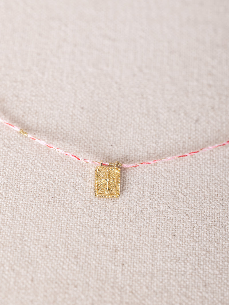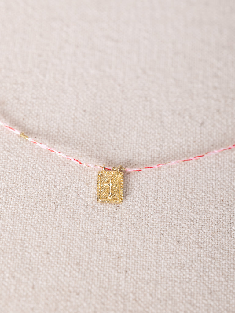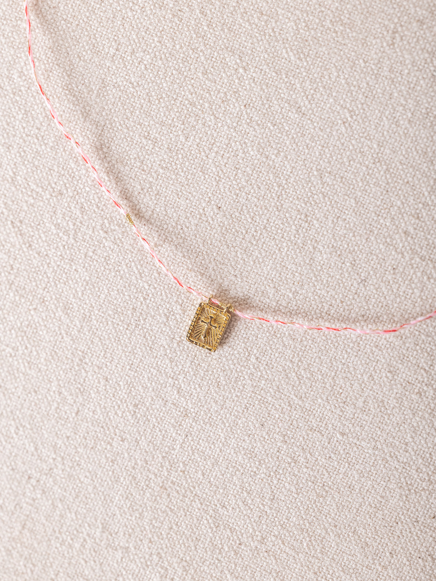 Handwoven with soft cotton string and finished with a delicate gold-plated silver charm, this necklace brings an effortless, understated beauty to everyday wear. Designed with an adjustable 60cm string, it can be worn long, layered, or styled close to the collarbone. A quiet, personal piece that adds a touch of warmth and simplicity to any look.