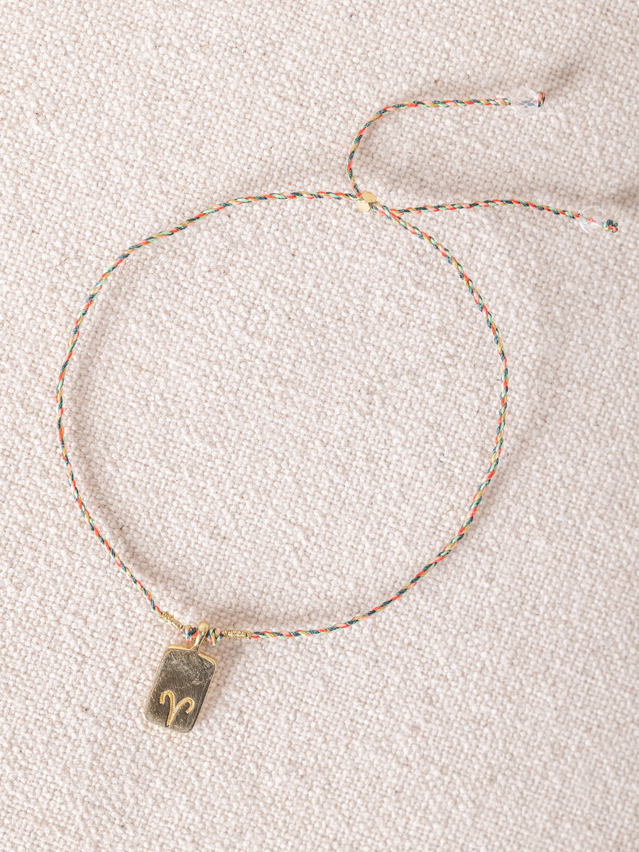 Handwoven with delicate threads and finished with a gold-plated silver charm, this bracelet celebrates each zodiac sign with quiet elegance. Its adjustable design ensures a perfect fit, making it effortless to wear alone or layered. A subtle nod to the stars — timeless, personal, and refined.