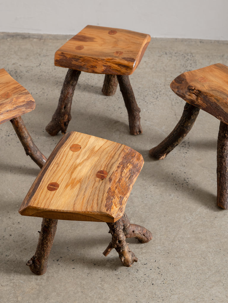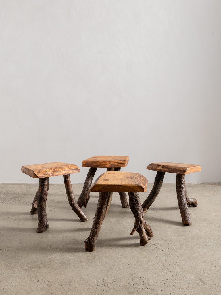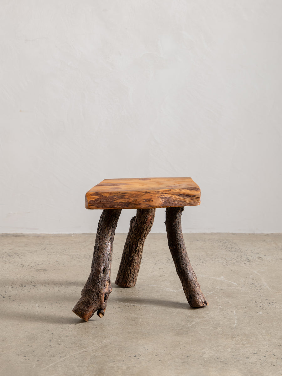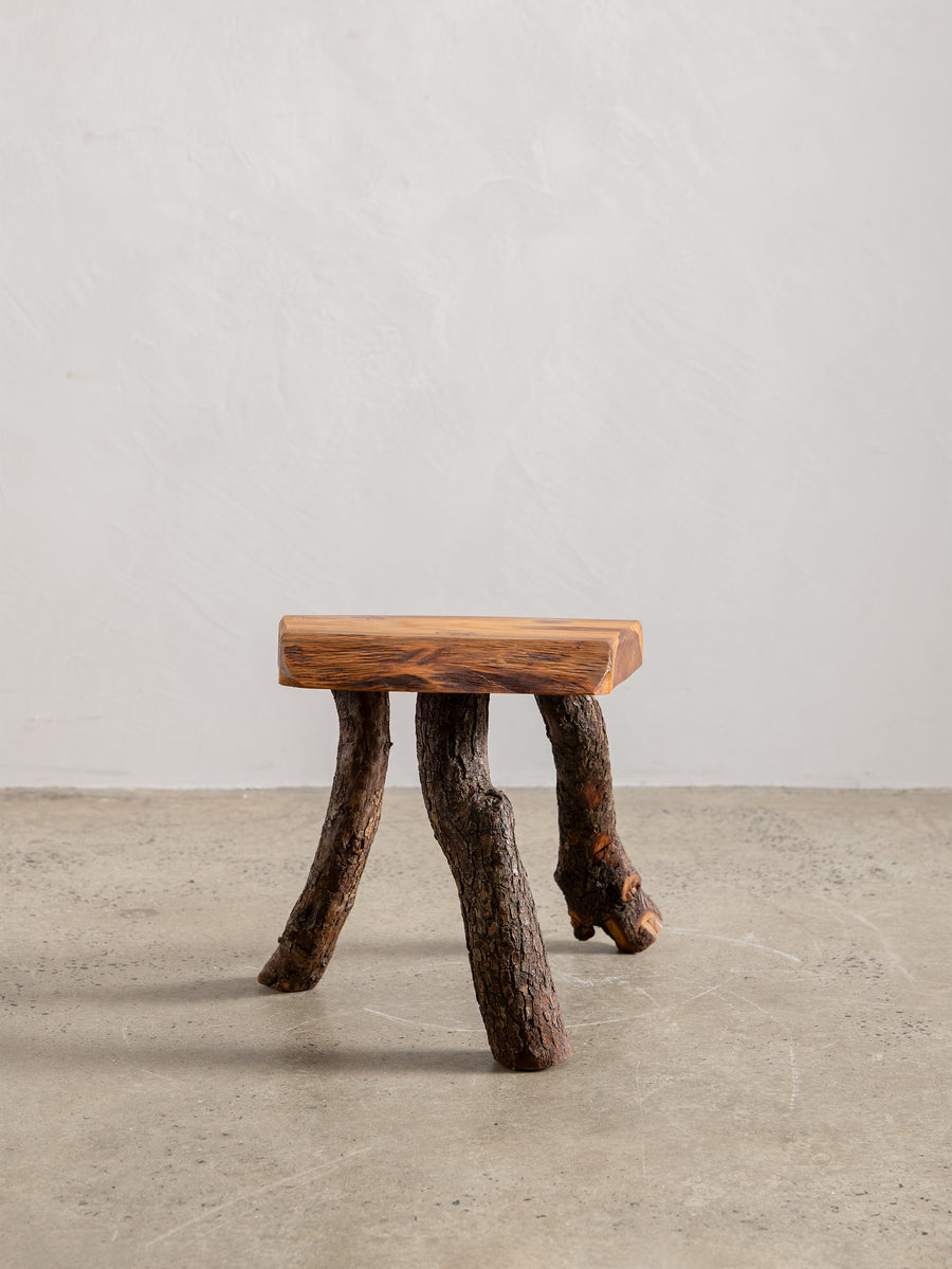 Raw and grounded, this Italian wooden stool embraces the irregular beauty of nature. Its seat is hewn from a solid block of timber, while the legs retain the wild, organic form of branches—twisting and tapering with a sculptural ease.