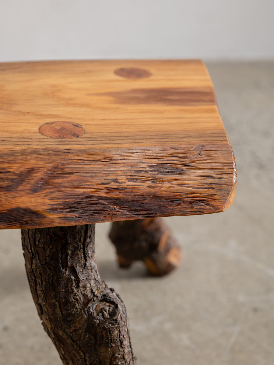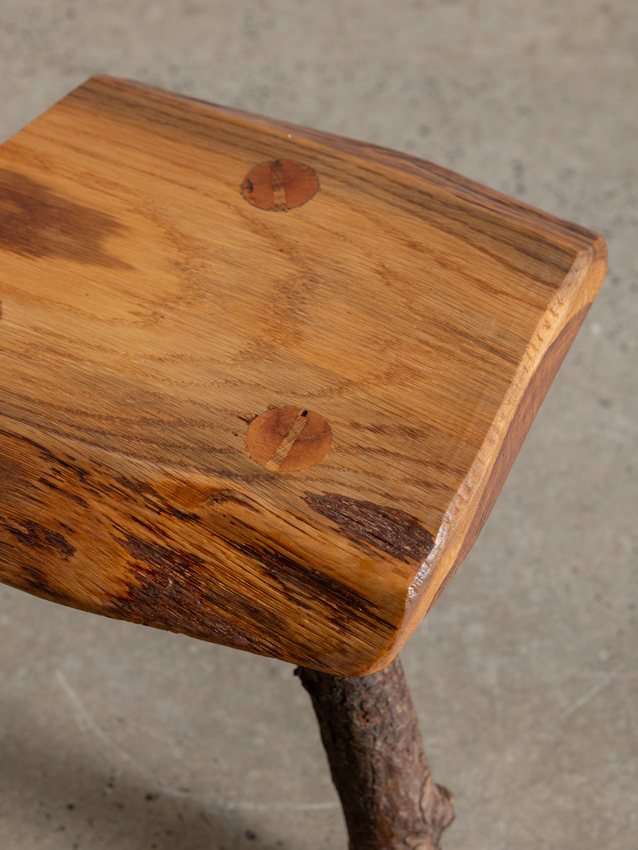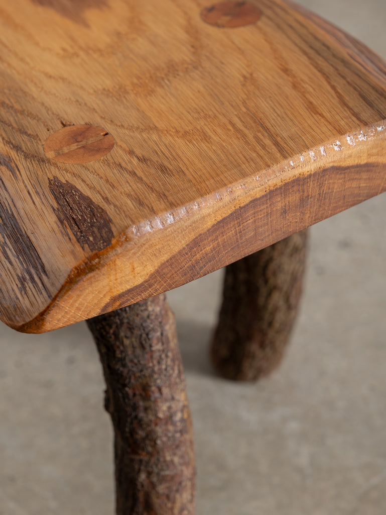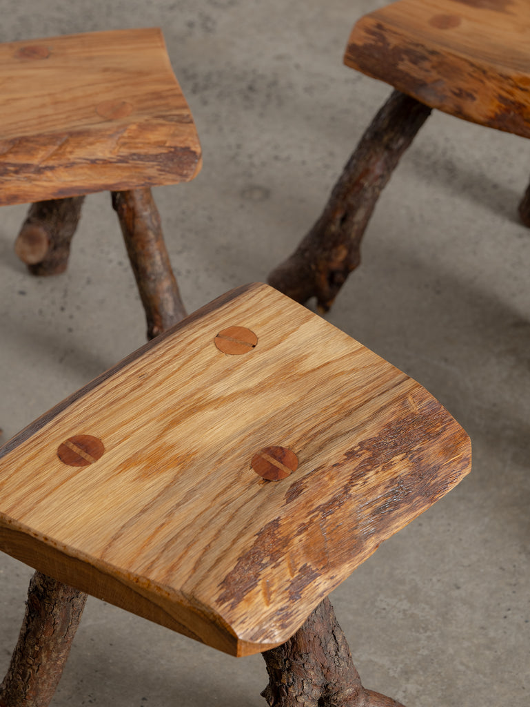 Raw and grounded, this Italian wooden stool embraces the irregular beauty of nature. Its seat is hewn from a solid block of timber, while the legs retain the wild, organic form of branches—twisting and tapering with a sculptural ease.