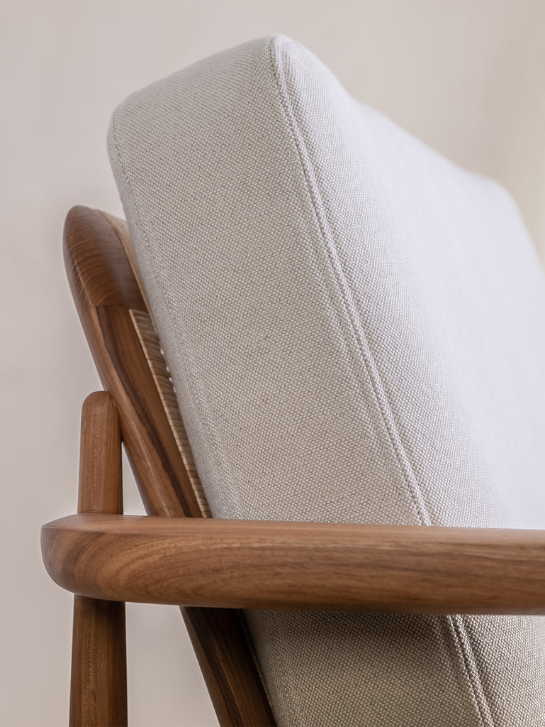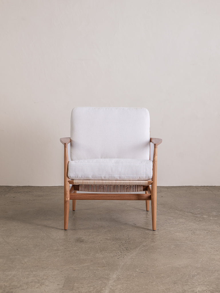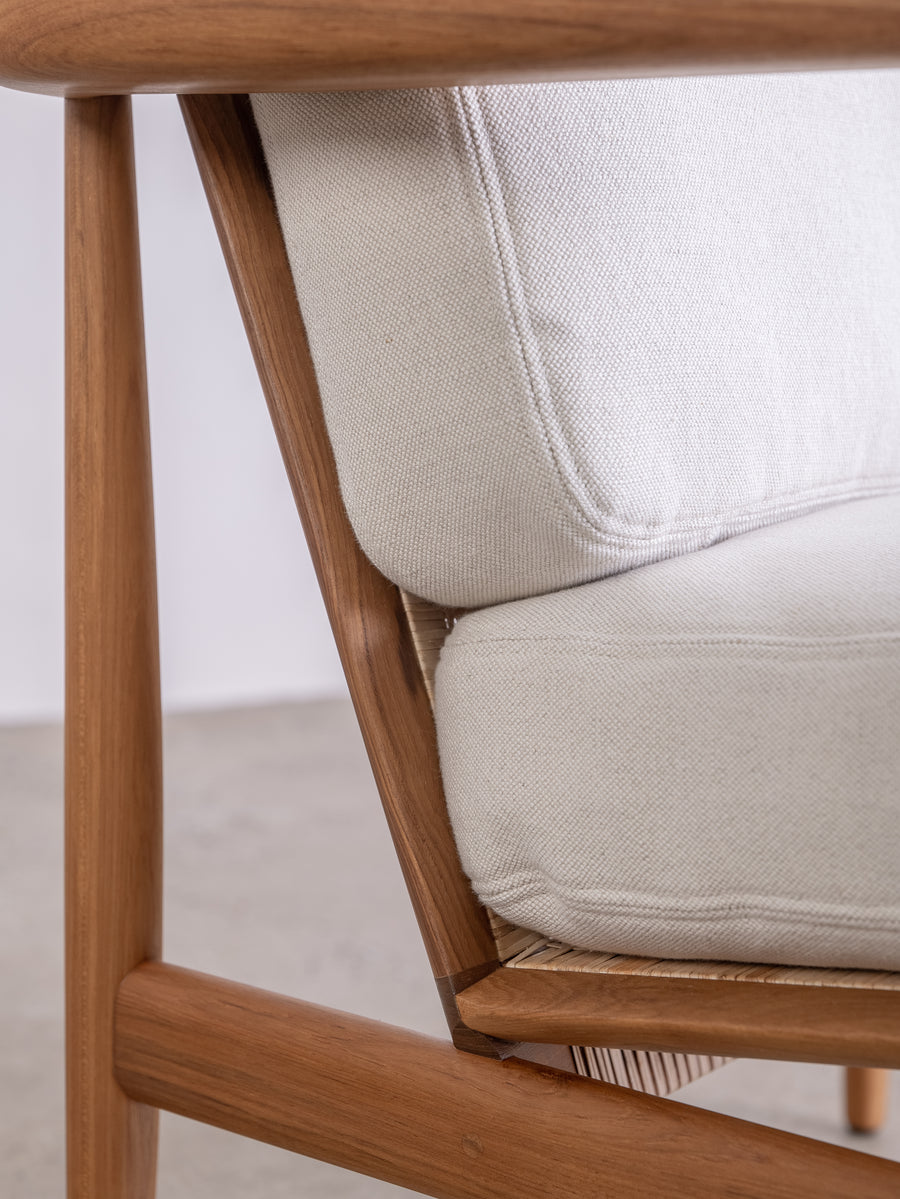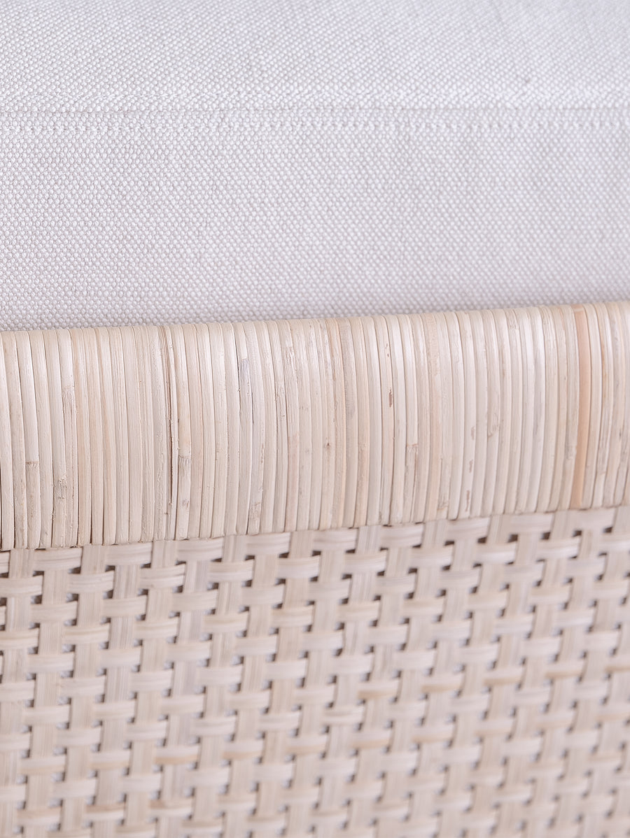 The Tangali Comfort Chair is a spacious and cozy lounge chair that is accompanied by back and seat cushions; designed for ultimate relaxation. This luxurious piece features hand-spun cotton fabric cushions that are filled with foam and wadding atop the signature Tangali cane weave and teak timber frame.