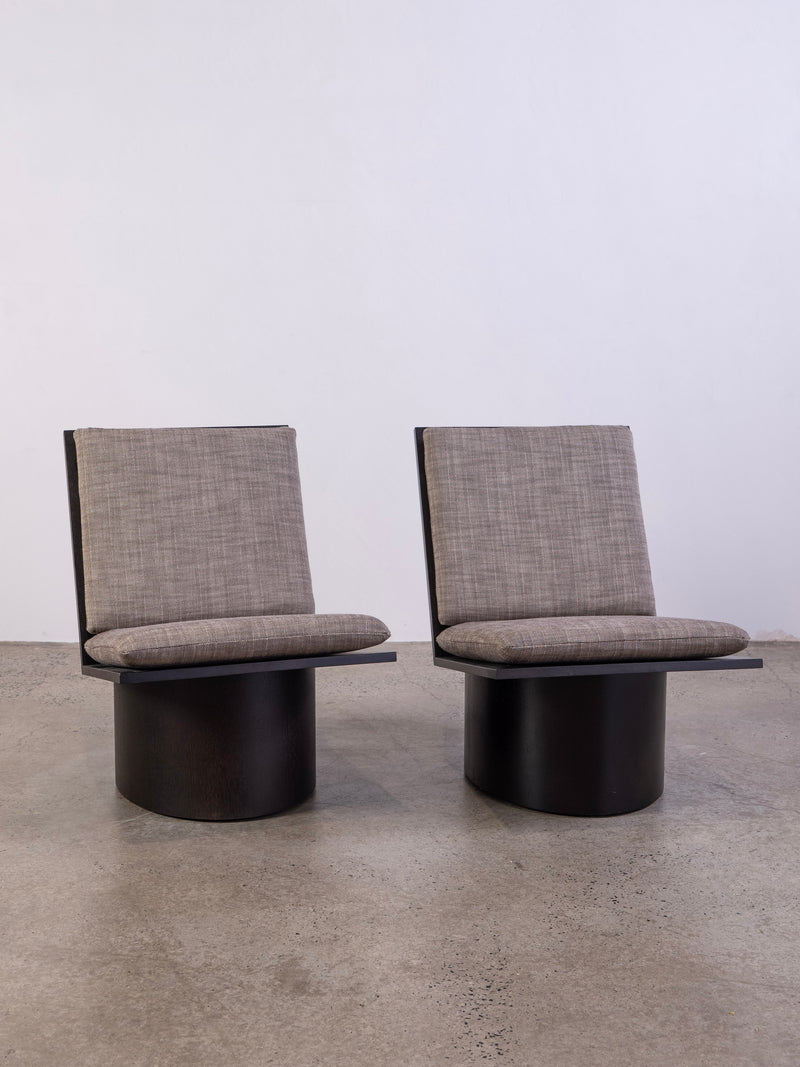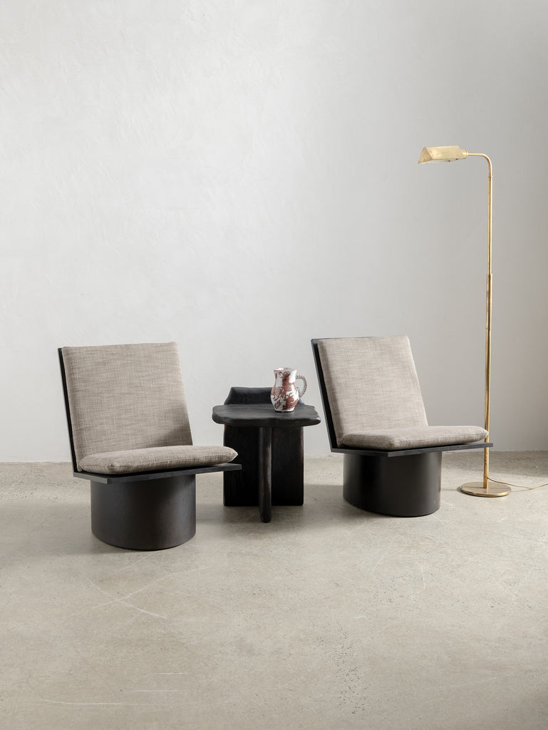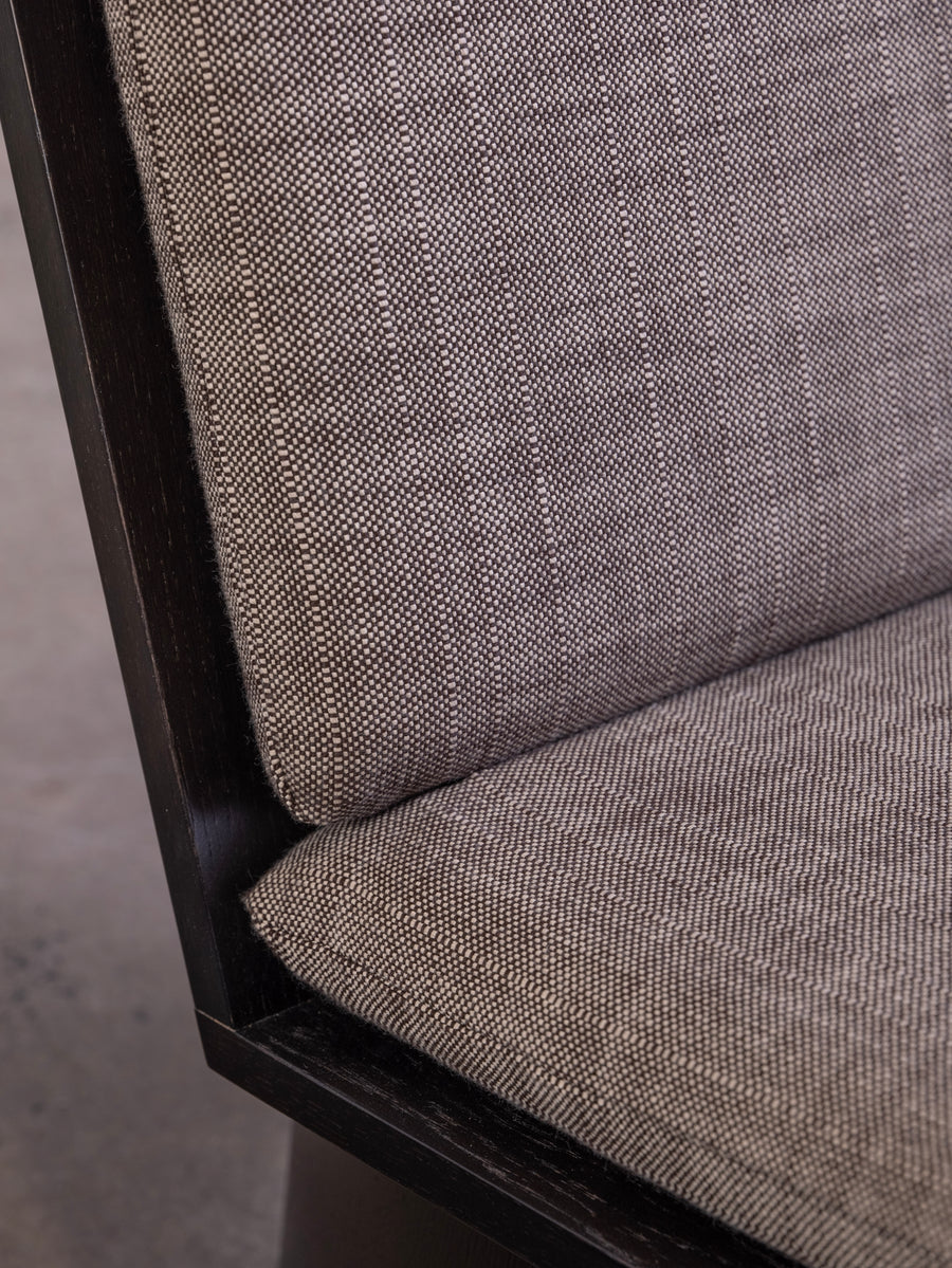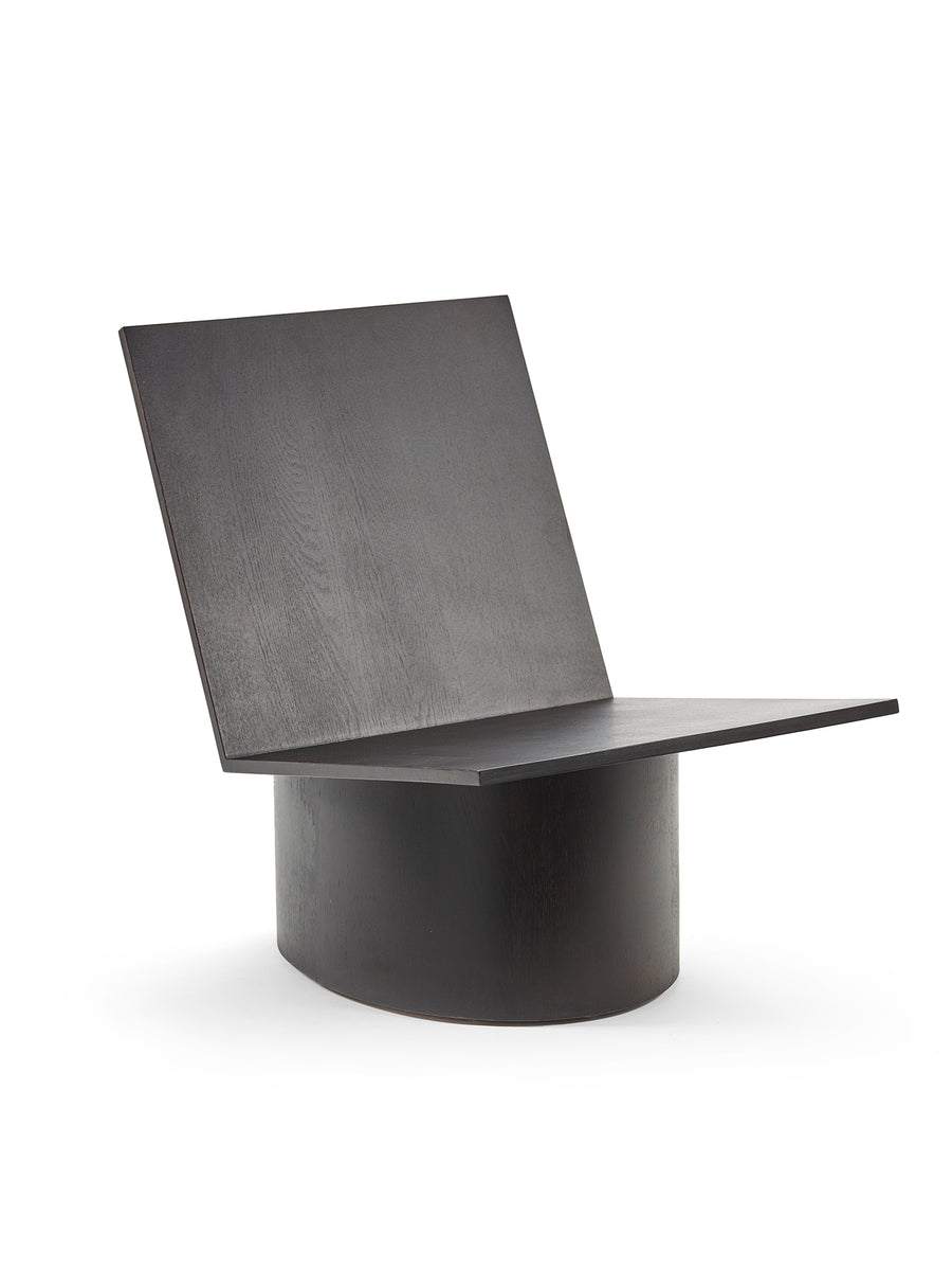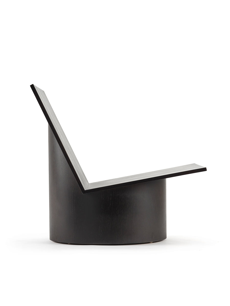 With mathematic precision, the proportions fit perfectly to the human body. Set upon an eliptical base sit two rectangular surfaces at the optimum angle. Crafted from oak and finished with an ebony stain.