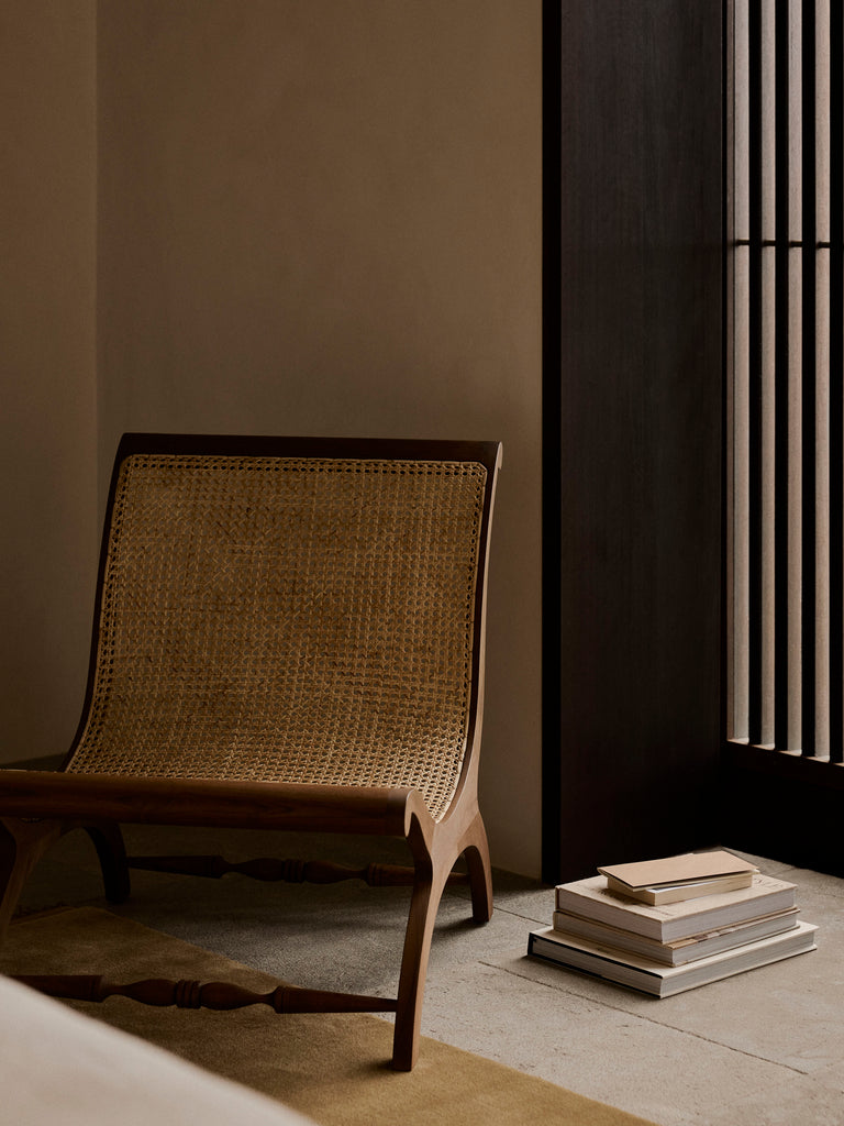 The Bentota Lounge Chair draws inspiration from the Verandah Armchair (Hansi Putuwa in Sinhalese), a colonial-era classic known for its high back, wide armrests, and woven cane seating. Variations of this chair can be found across India, Southeast Asia, the Caribbean, South America, and Africa. The same chair has similarly inspired several reinterpretations in the postcolonial world. Cuban-born designer Clara Porset's Butaque chair, created in Mexico in the 1940s and ’50s, for instance, was also inspired by the same chair. Porset’s adaptation was commissioned by architects such as Luis Barragán—whose work Bawa admired—and Mario Pani.