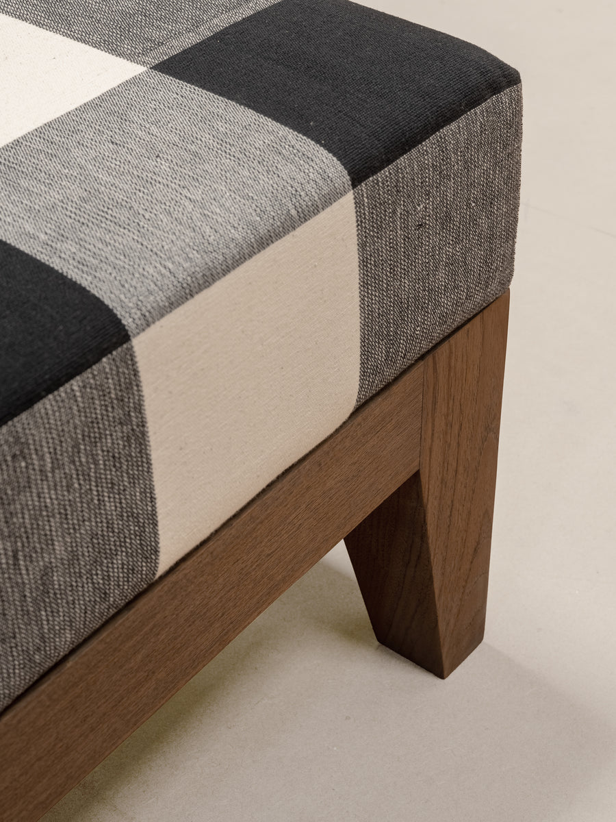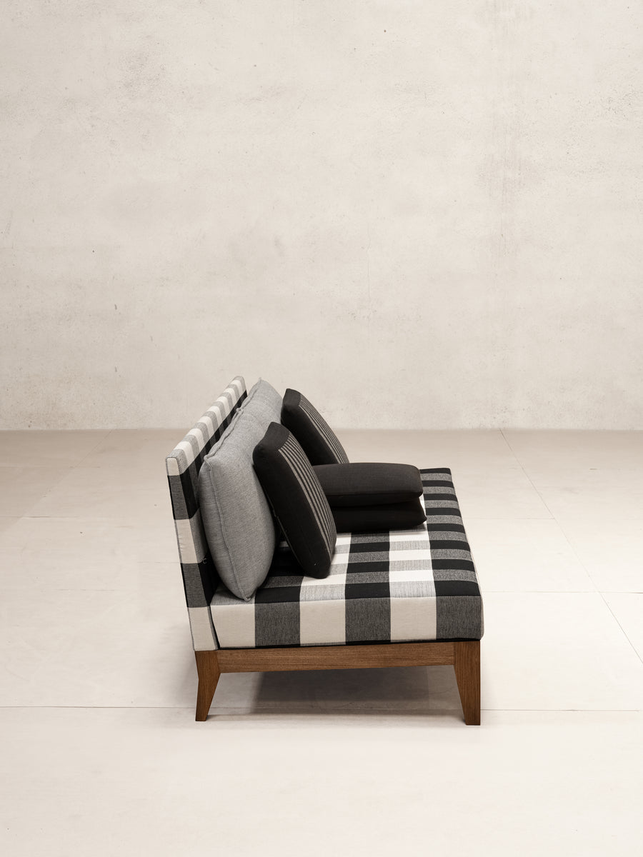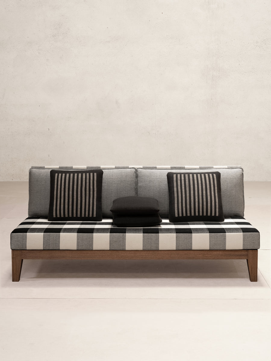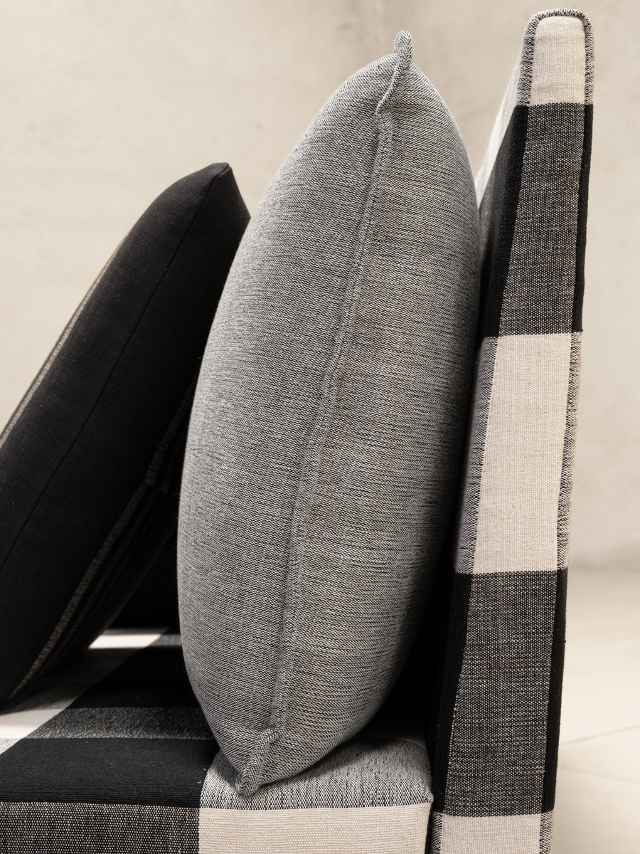 Phantom Hands’ re-edition comes in two versions - one which retains the sofa's original dimensions and a scaled-down version with reduced depth, making it compatible for contemporary use and for people of different heights. The black and white upholstery fabric is from Barefoot in a special unbleached white to mimic the patina of the sofa fabric of the original piece at No. 11, 33rd lane. The handwoven fabric is reinforced with a knit backing for added strength and durability.