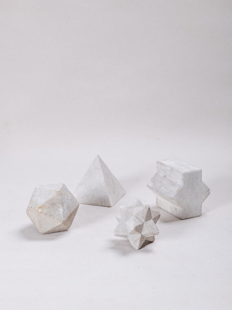 Defined by sculptural geometry and tactile simplicity, these ceramic forms explore the balance between light, shadow, and material. Each piece is hand-shaped in raw, textured clay, creating subtle variations that celebrate their artisanal character. Displayed together, they form a harmonious composition—but each stands beautifully on its own as a singular work of art.