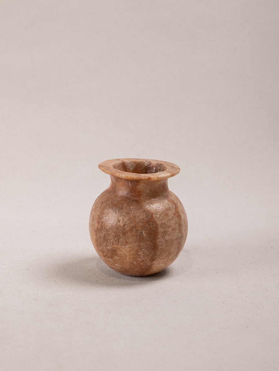 Discover the subtle allure of this petite antique alabaster vase, a timeless piece of quiet elegance. Its soft, creamy tones and naturally translucent finish capture the beauty of aged stone, each unique detail telling stories of its past. Small yet captivating, it adds a gentle touch of character to any space, whether as a standalone accent or paired with wild blooms. This vase is a piece of understated charm, a reminder of craftsmanship that honours simplicity and natural beauty.