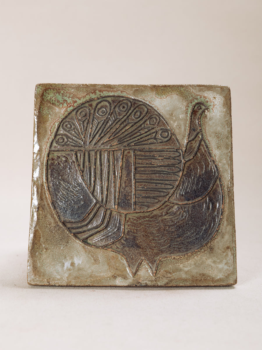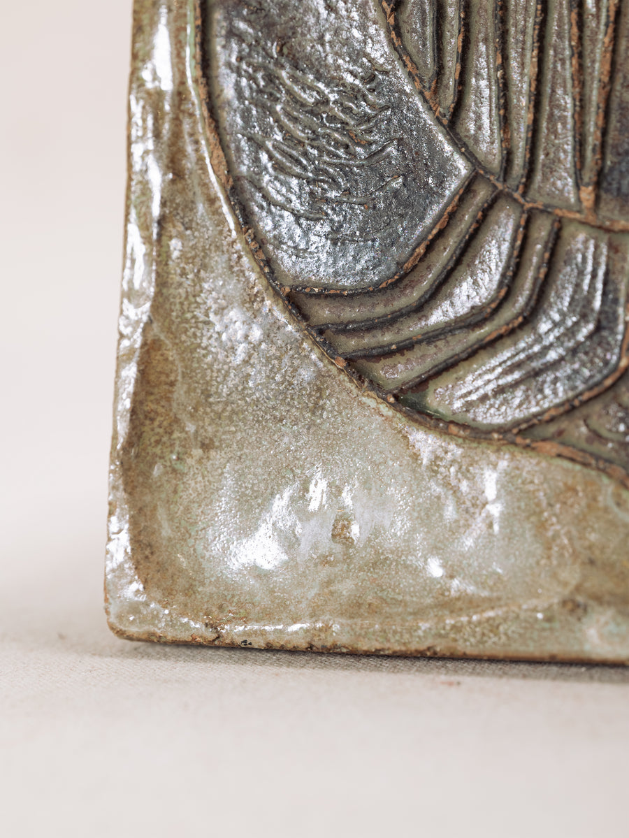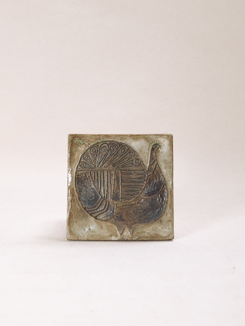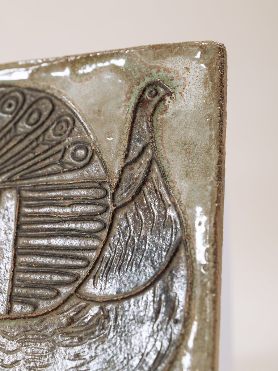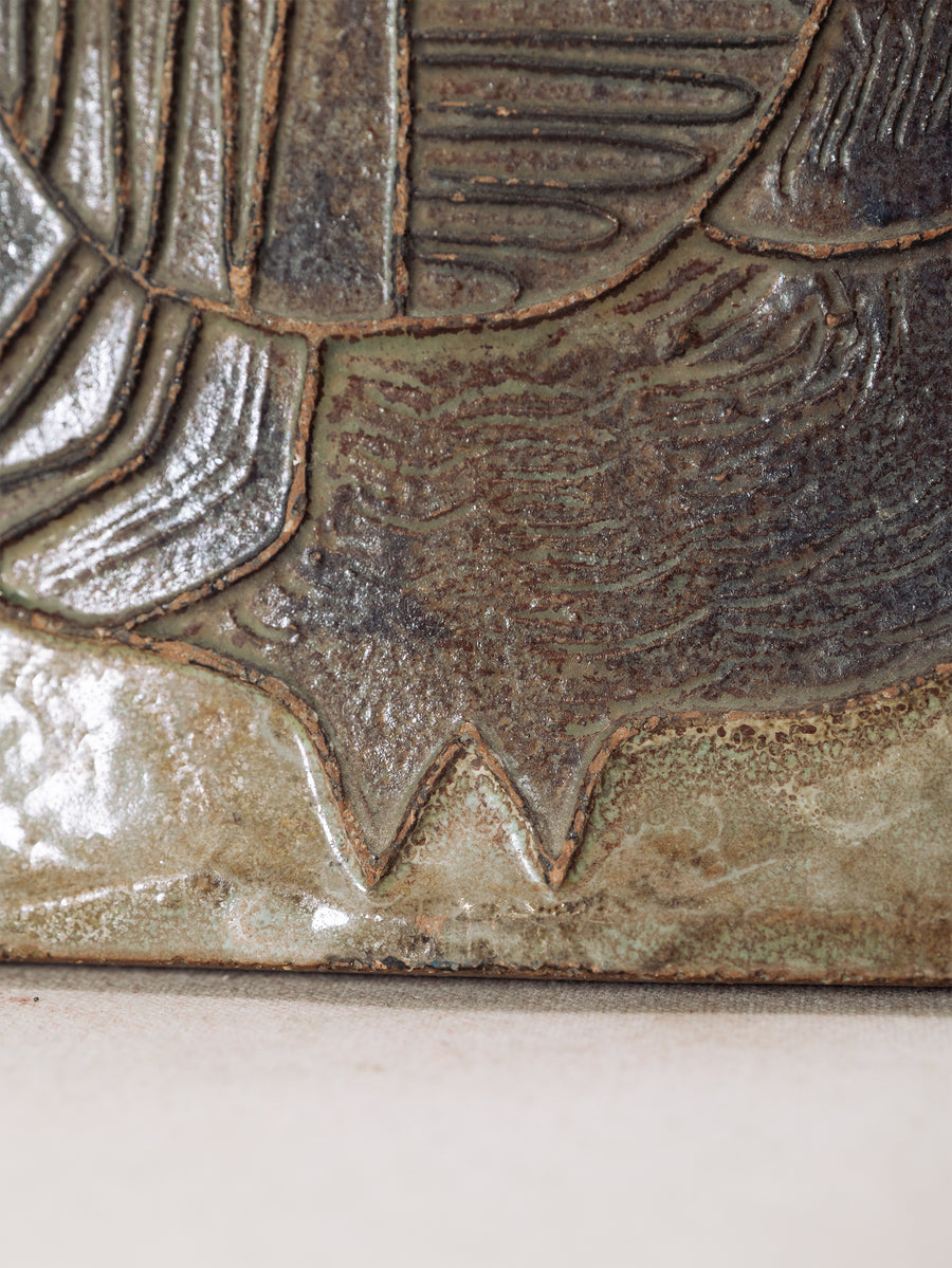 Created by Roland Zobel for Les Cyclades Anduze, this ceramic tile captures the refined artistry of French mid-century design. The hand-carved relief depicts a stylised bird, rendered in earthy glazes of olive and umber that softly catch the light. Both graphic and tactile, it reflects Zobel’s signature balance between modern abstraction and natural form. Displayed on its own or as part of a collection, it brings quiet character and craftsmanship to any space.