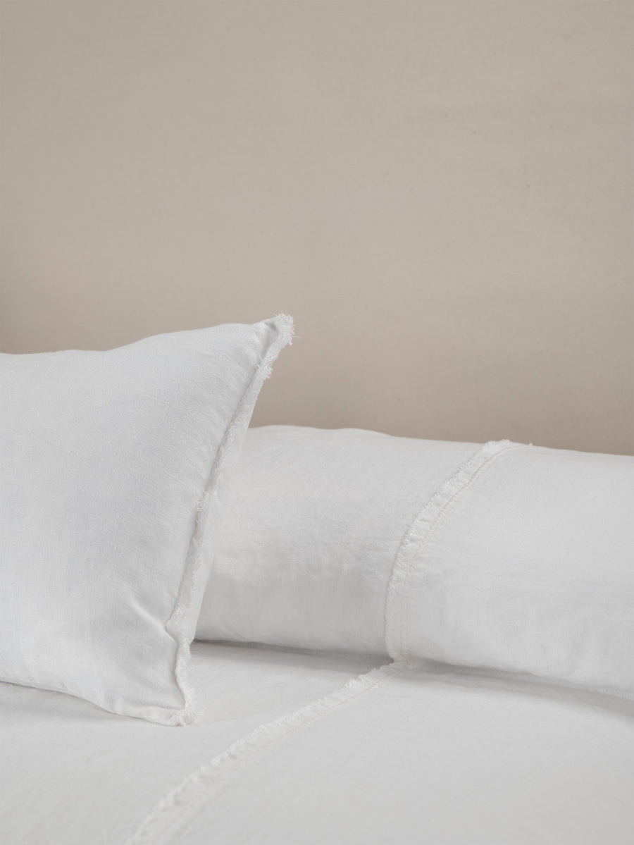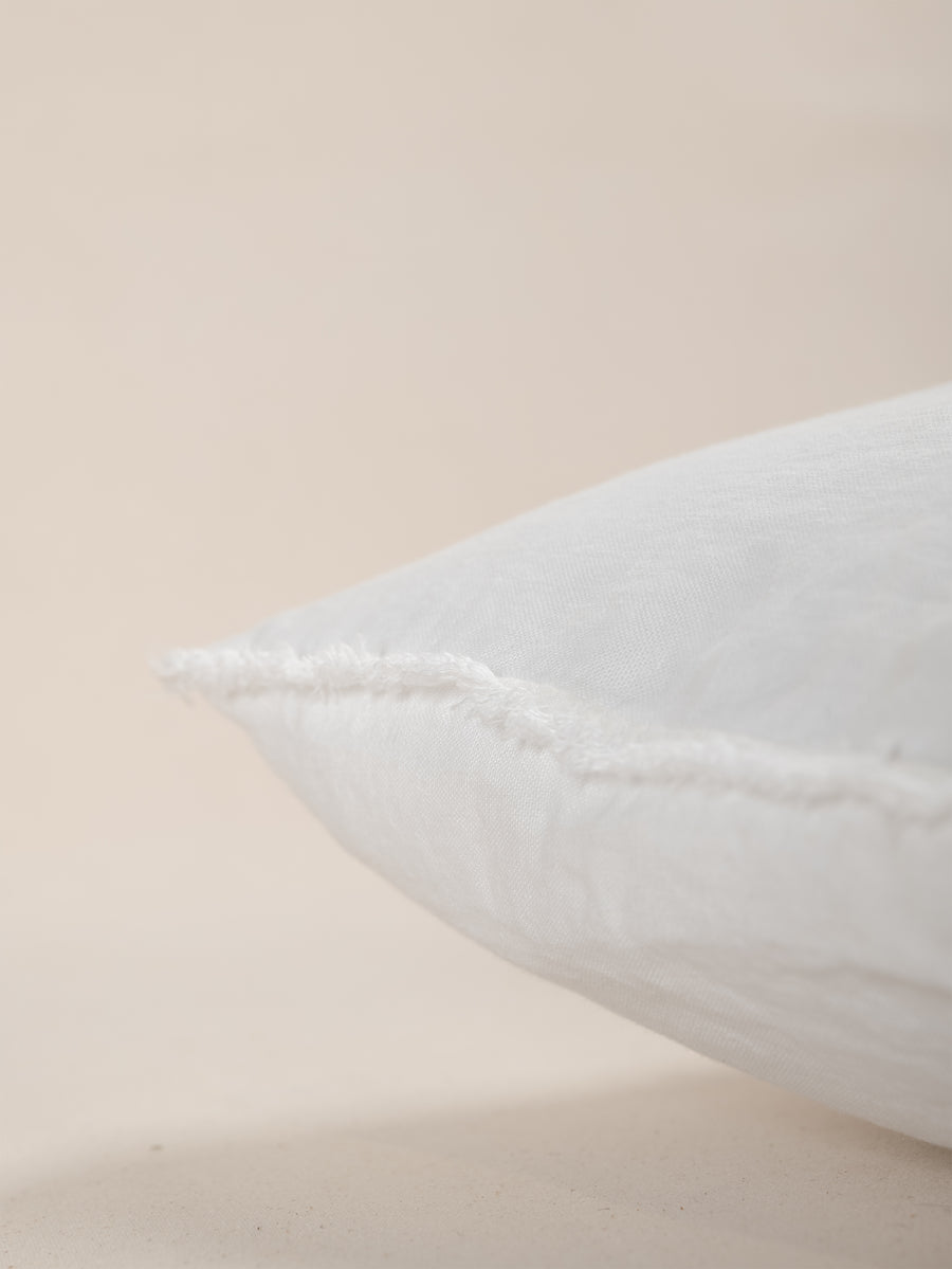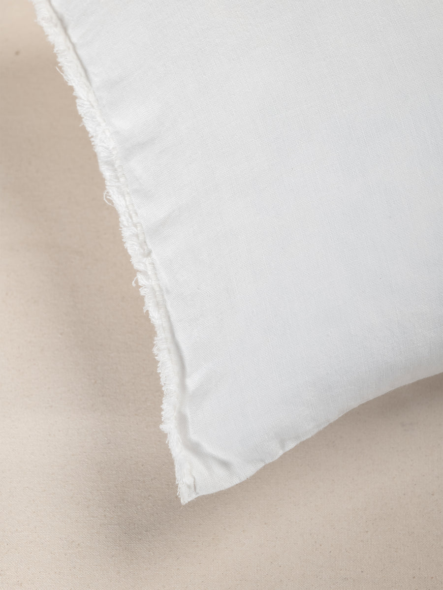 Embroidered Linen Lumbar Cushion, Chalk