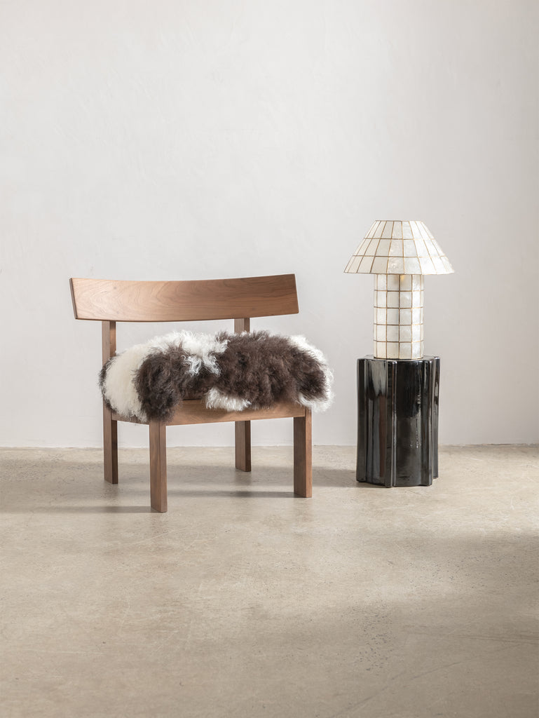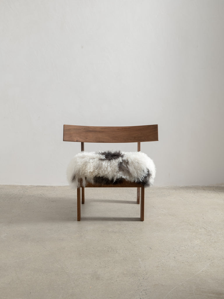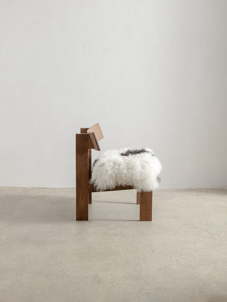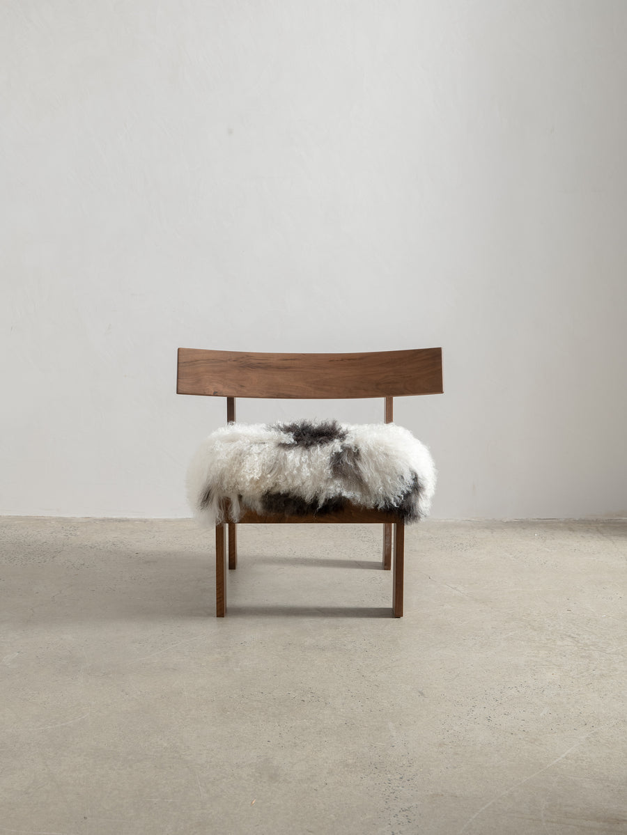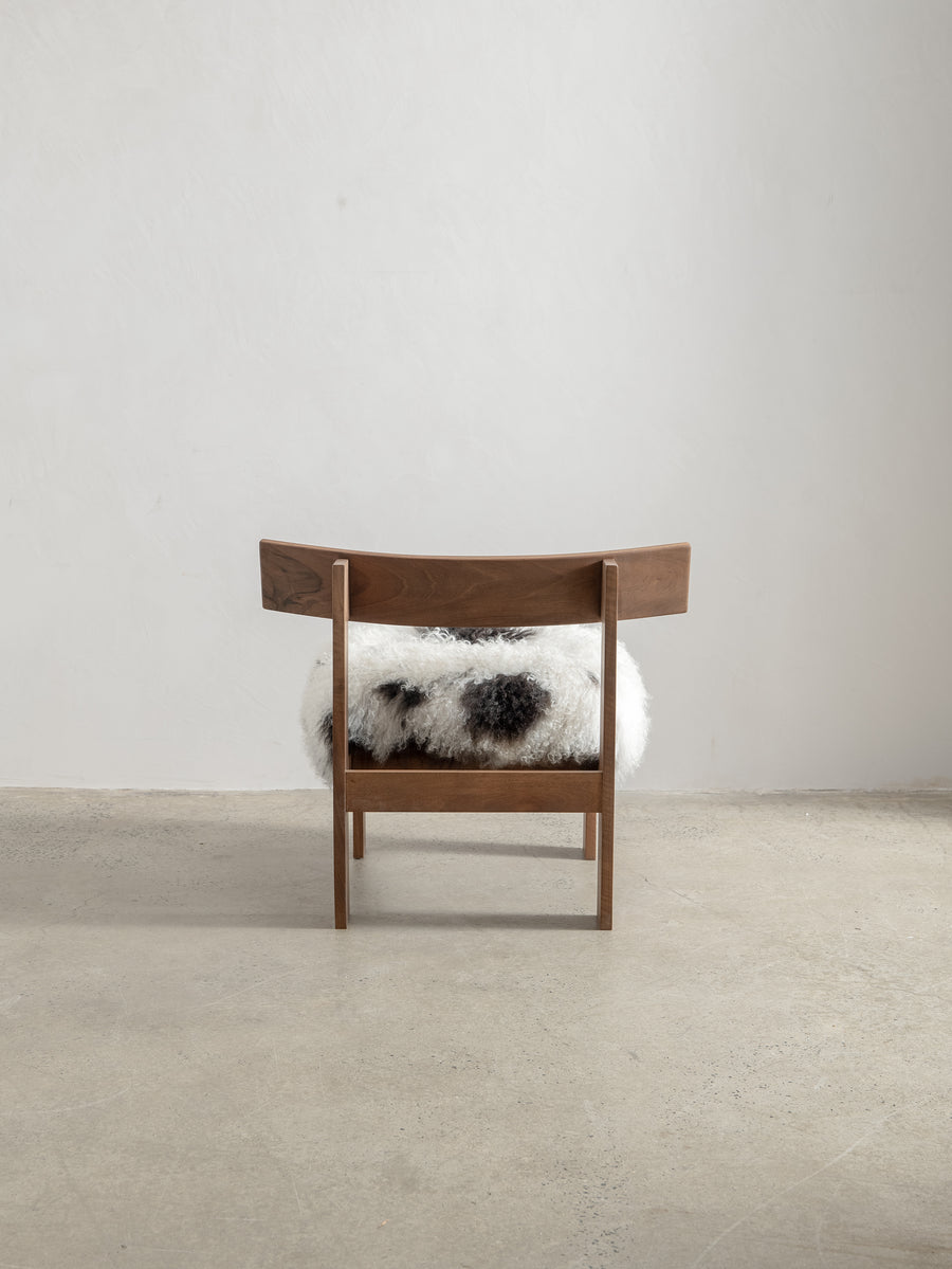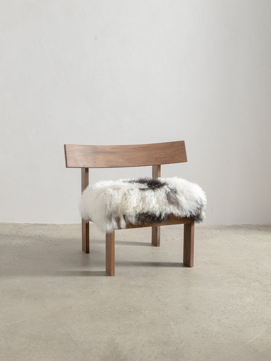 Easy Chair is the result of a collaboration between Niklas Runesson and Dusty Deco. Runesson, an autodidact artist, designer and carpenter has at first crafted this chair in his workshop in Stockholm. Made from solid walnut with a seat upholstered in sheepskin.