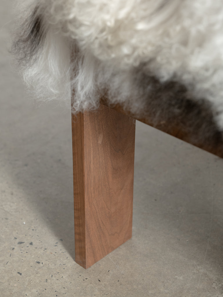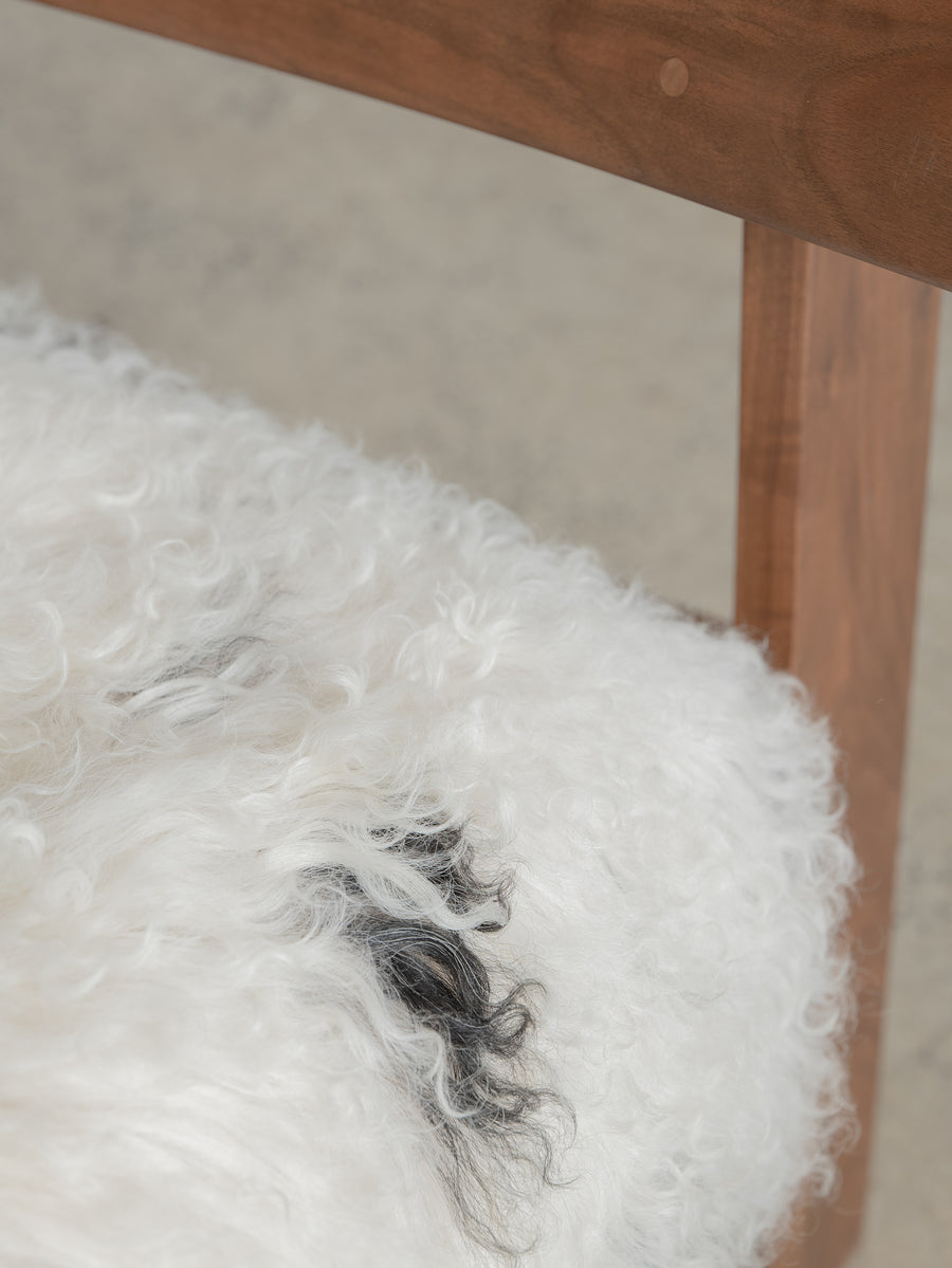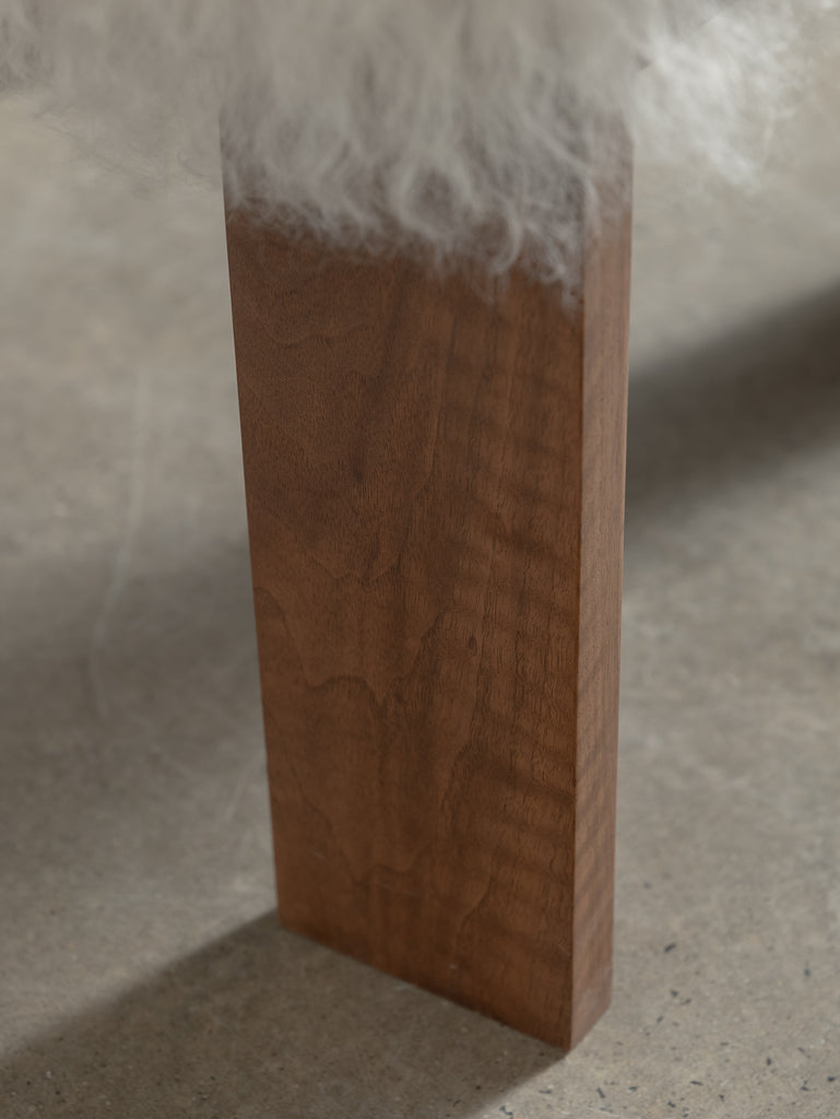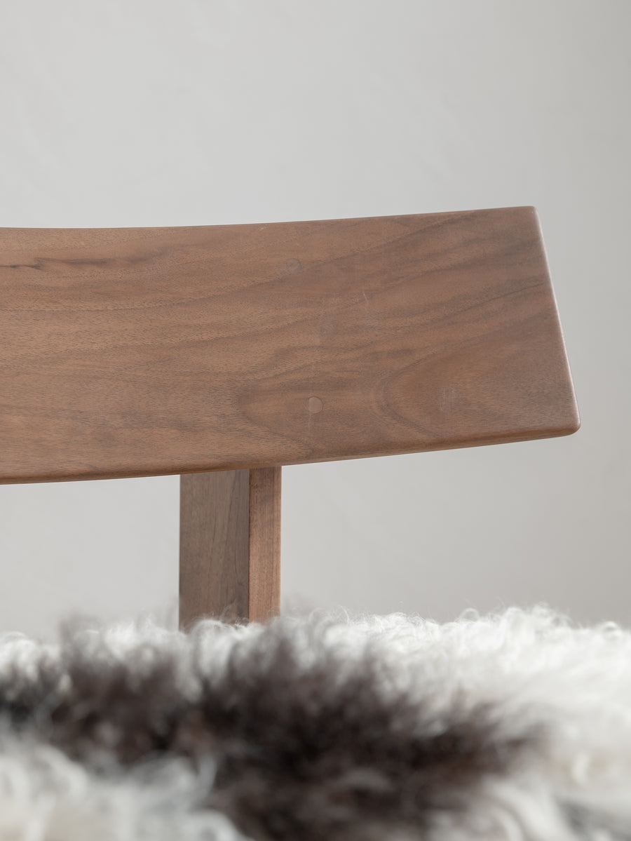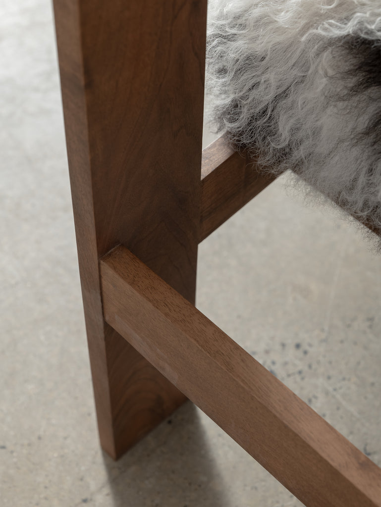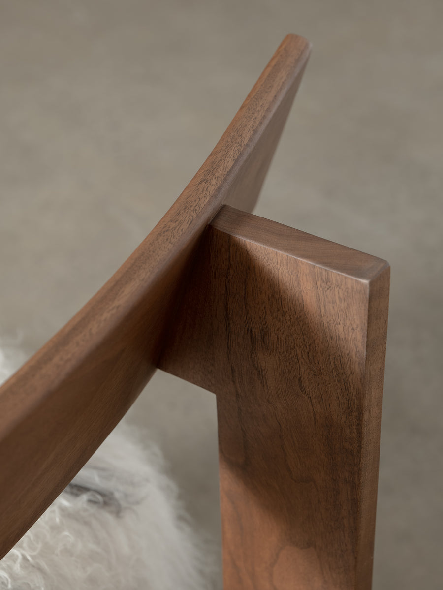 Easy Chair is the result of a collaboration between Niklas Runesson and Dusty Deco. Runesson, an autodidact artist, designer and carpenter has at first crafted this chair in his workshop in Stockholm. Made from solid walnut with a seat upholstered in sheepskin.