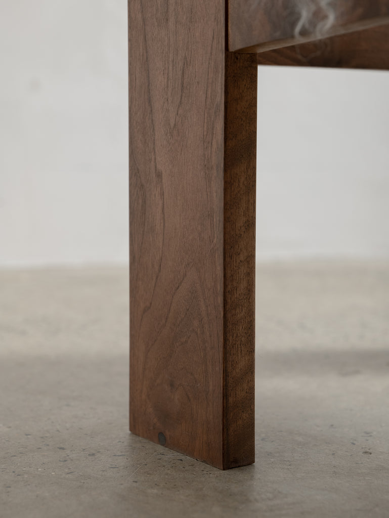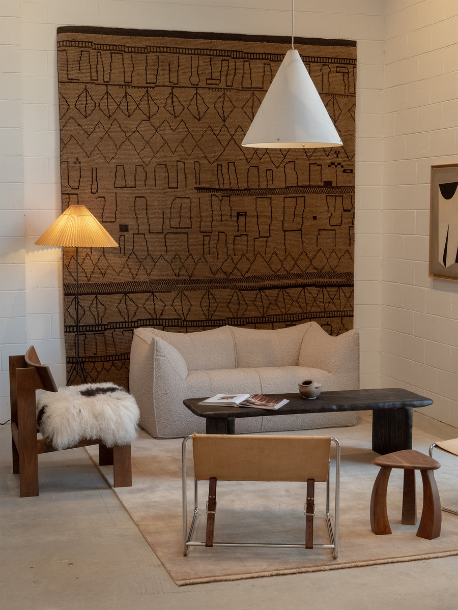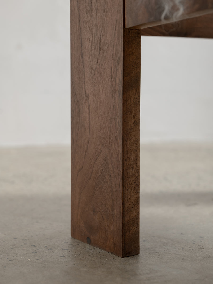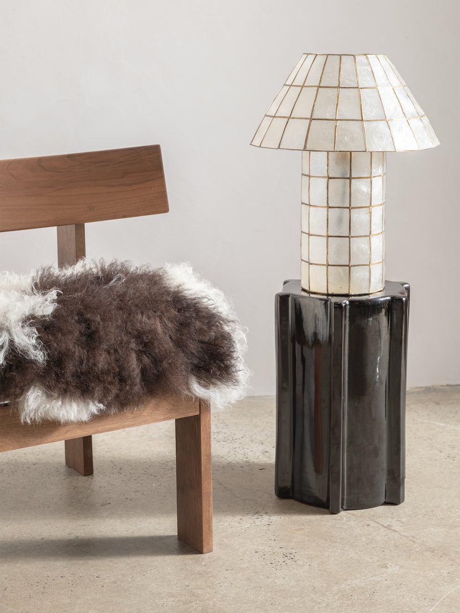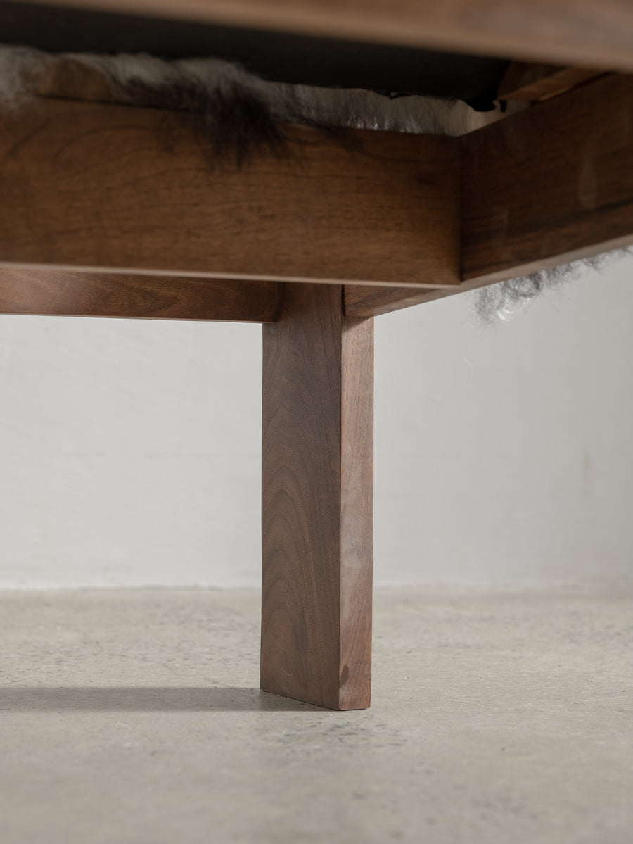 Easy Chair is the result of a collaboration between Niklas Runesson and Dusty Deco. Runesson, an autodidact artist, designer and carpenter has at first crafted this chair in his workshop in Stockholm. Made from solid walnut with a seat upholstered in sheepskin.
