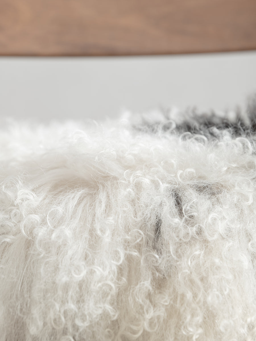 This Easy Chair features a natural material, sheepskin, resulting in unique variations in color for each individual chair. The natural base is a mix of browns and blacks, providing a beautiful variegated effect.