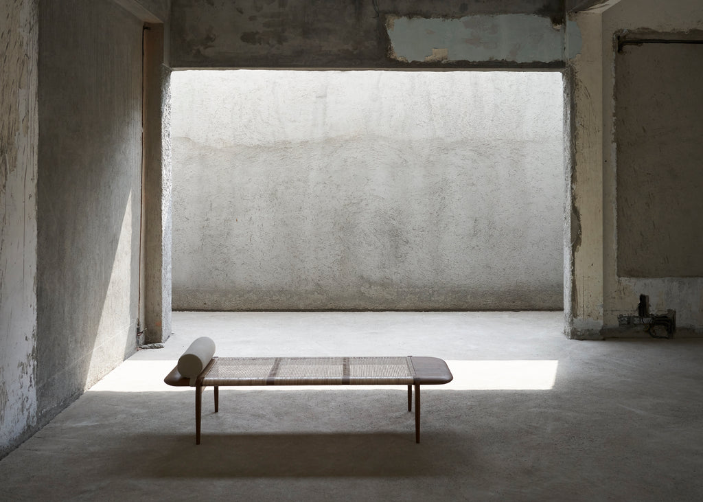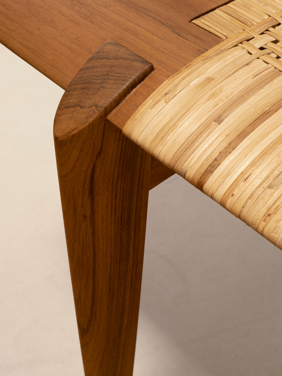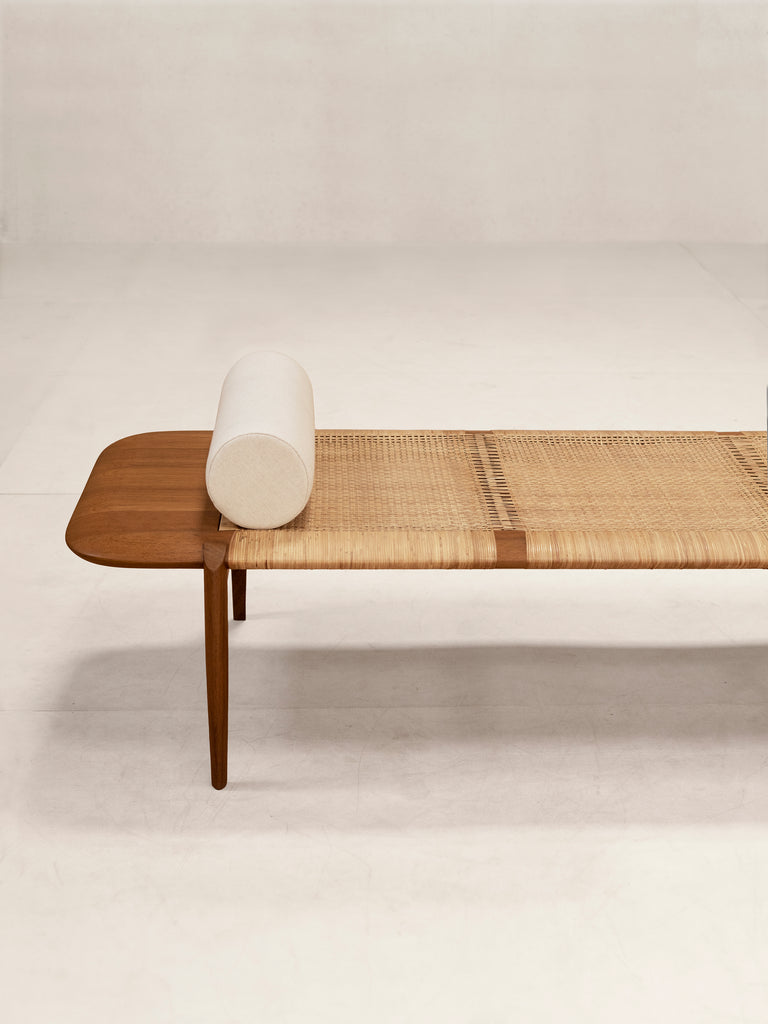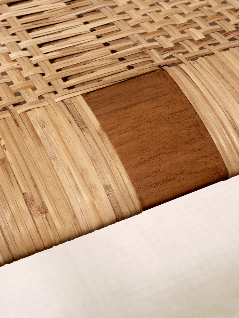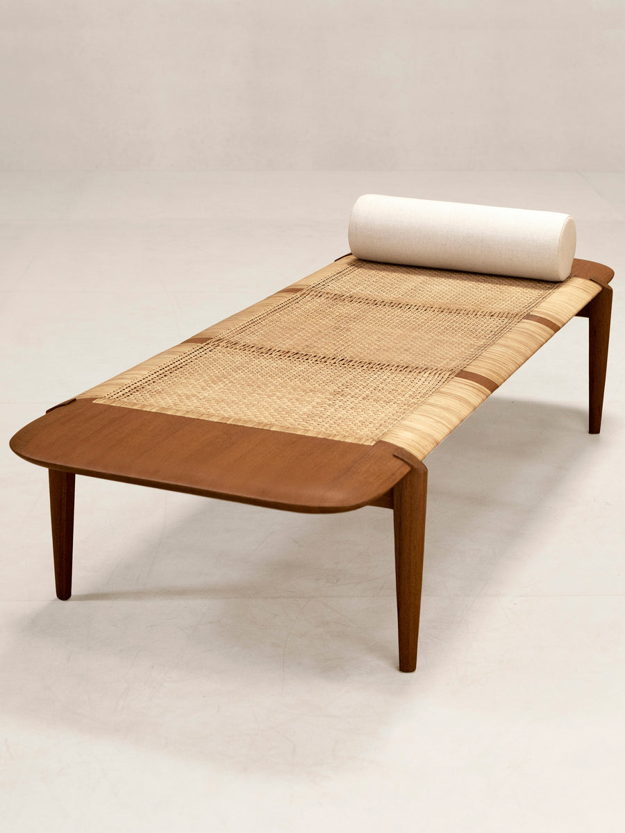 The contours of the day bed are completely shaped by hand, with innovation in cane weaving a core part of the design process where the cane is wrapped and woven around the wooden frames in the signature Tangali style.