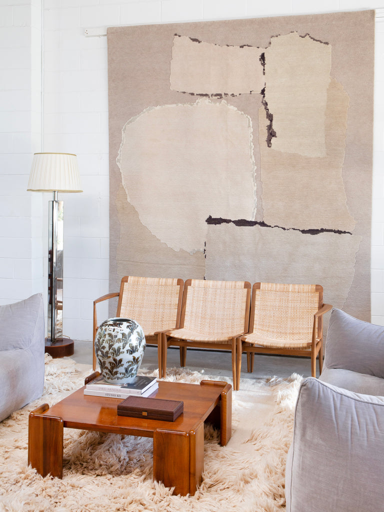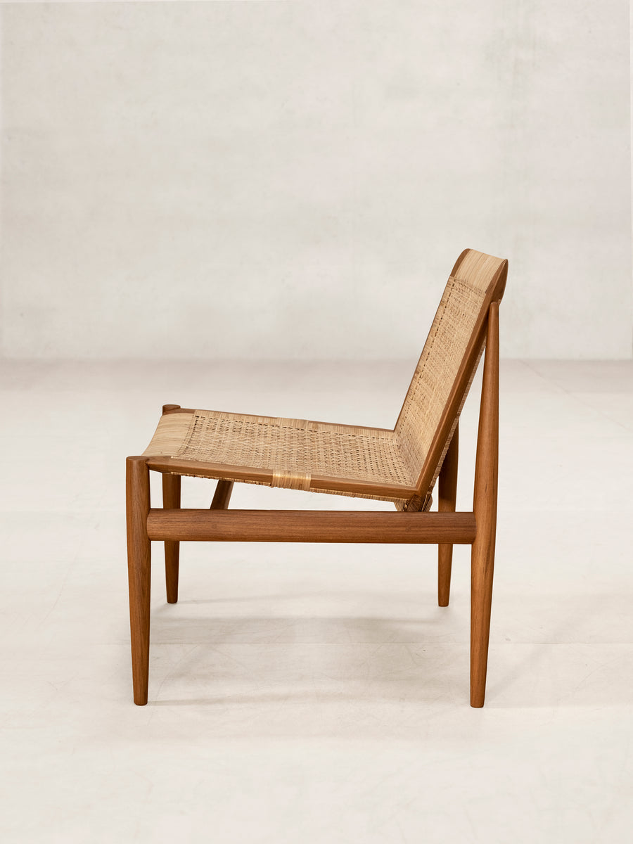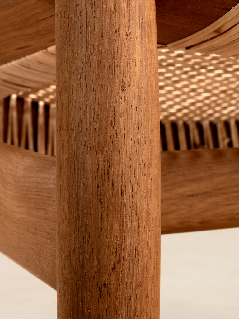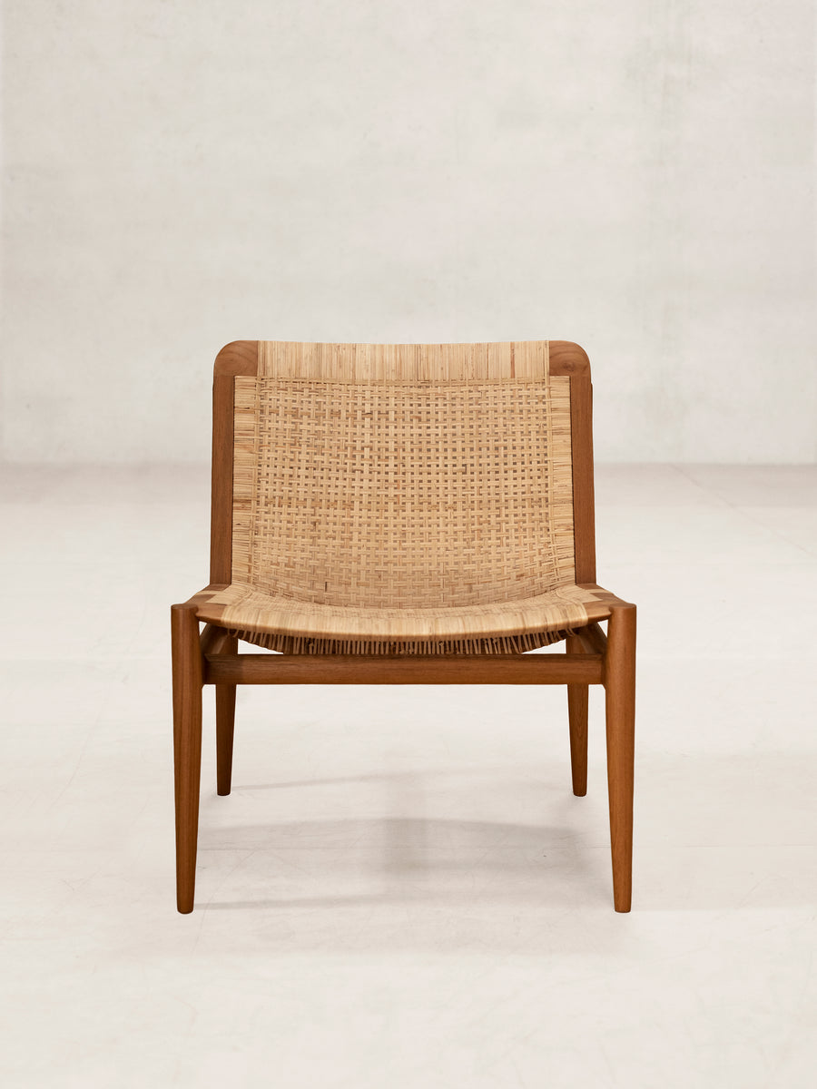 The Tangali Modular Chairs are a set comprising an armless chair, chairs with one arm (left or right) and armchairs with both arms. Individual chairs can be used in different combinations based on the seating requirement in a particular space. The contours of the modular pieces are completely shaped by hand, and the cane is wrapped and woven around the wooden frames in the signature Tangali style.