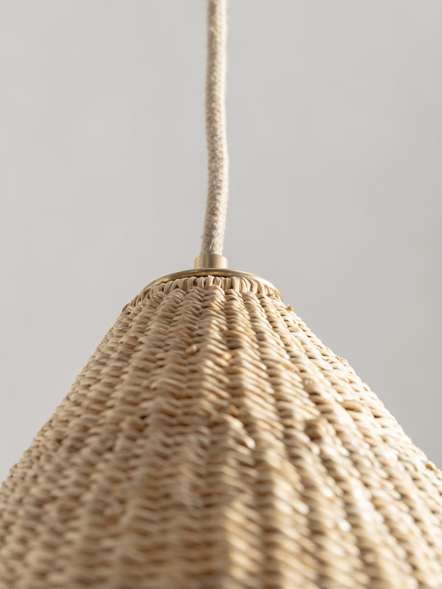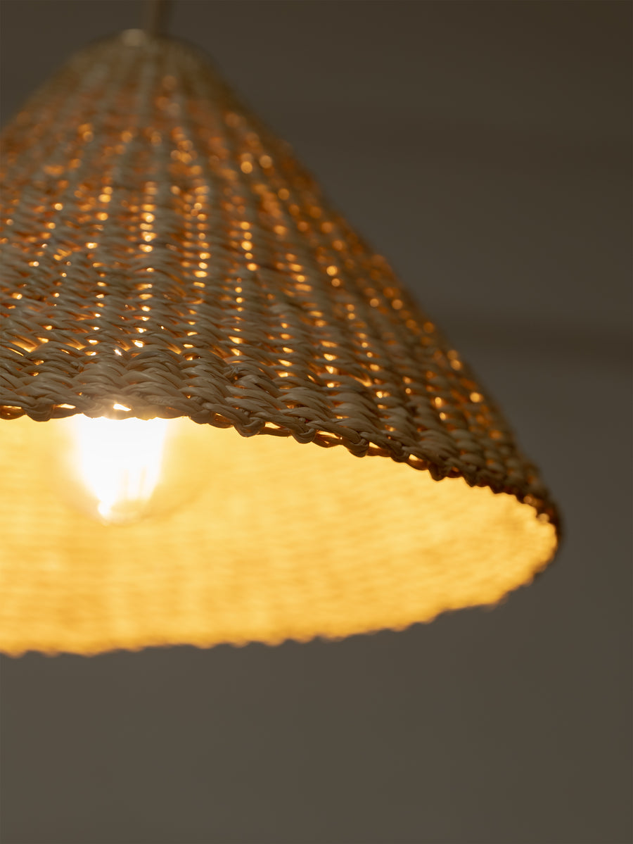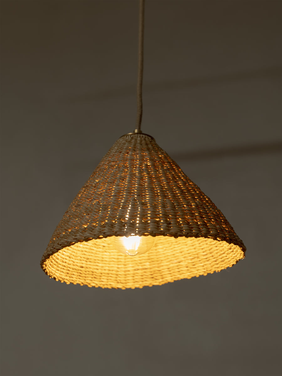 Handwoven from elephant grass by a cooperative of women in northern Ghana. Named for there funghi-like form, and when lit emit an ambient warm glow. As each shade is handwoven in a conical shape, every piece is slightly different and its own unique piece.
