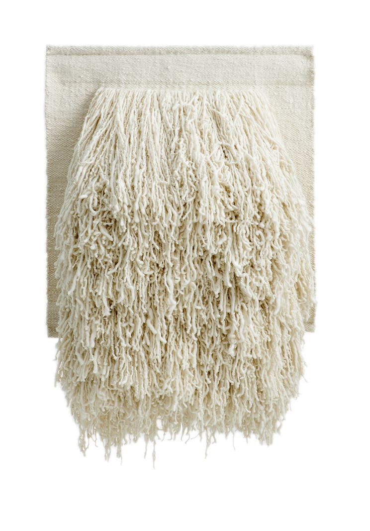 Tapestry No. 04 is an expressive wall piece, perfectly balancing soft and bold. Its long hand spun yarn in natural white wool lends the piece a tactility that makes it stand out; literally and metaphorically. It is an avantgarde interpretation of traditional textile art - handcrafted and unique.