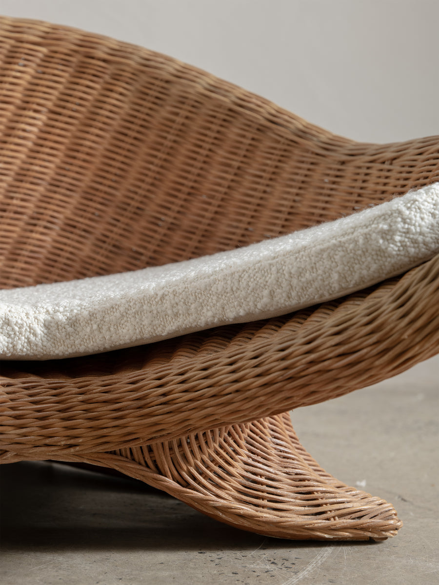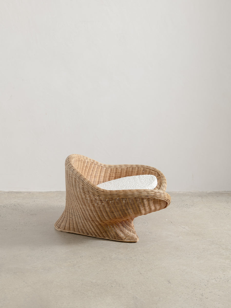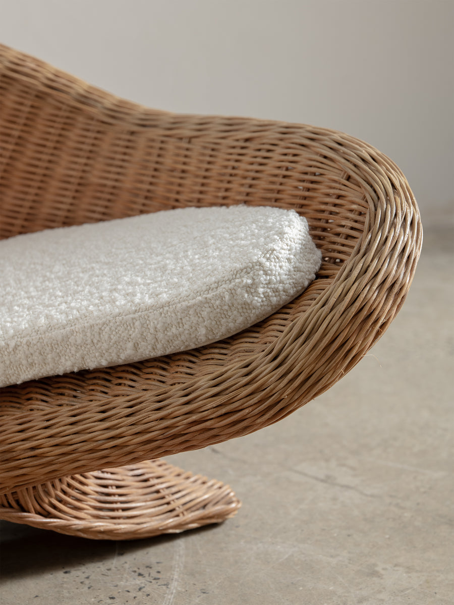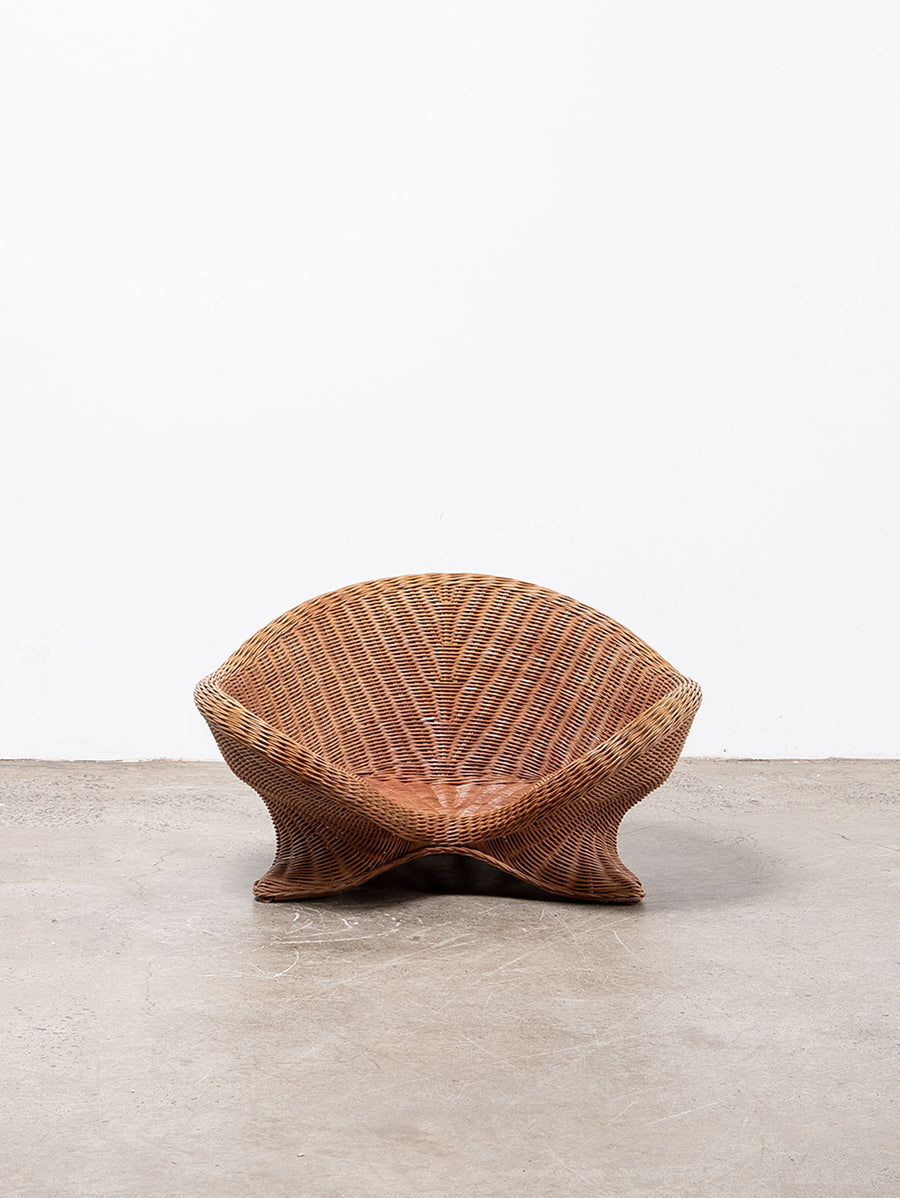 Low-set rattan chair by Vivai del Sud, a design combining the grandeur of Roman classicism and the clean sophistication of mid-century modernism.