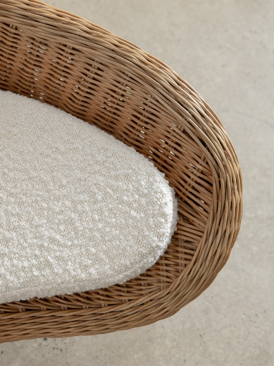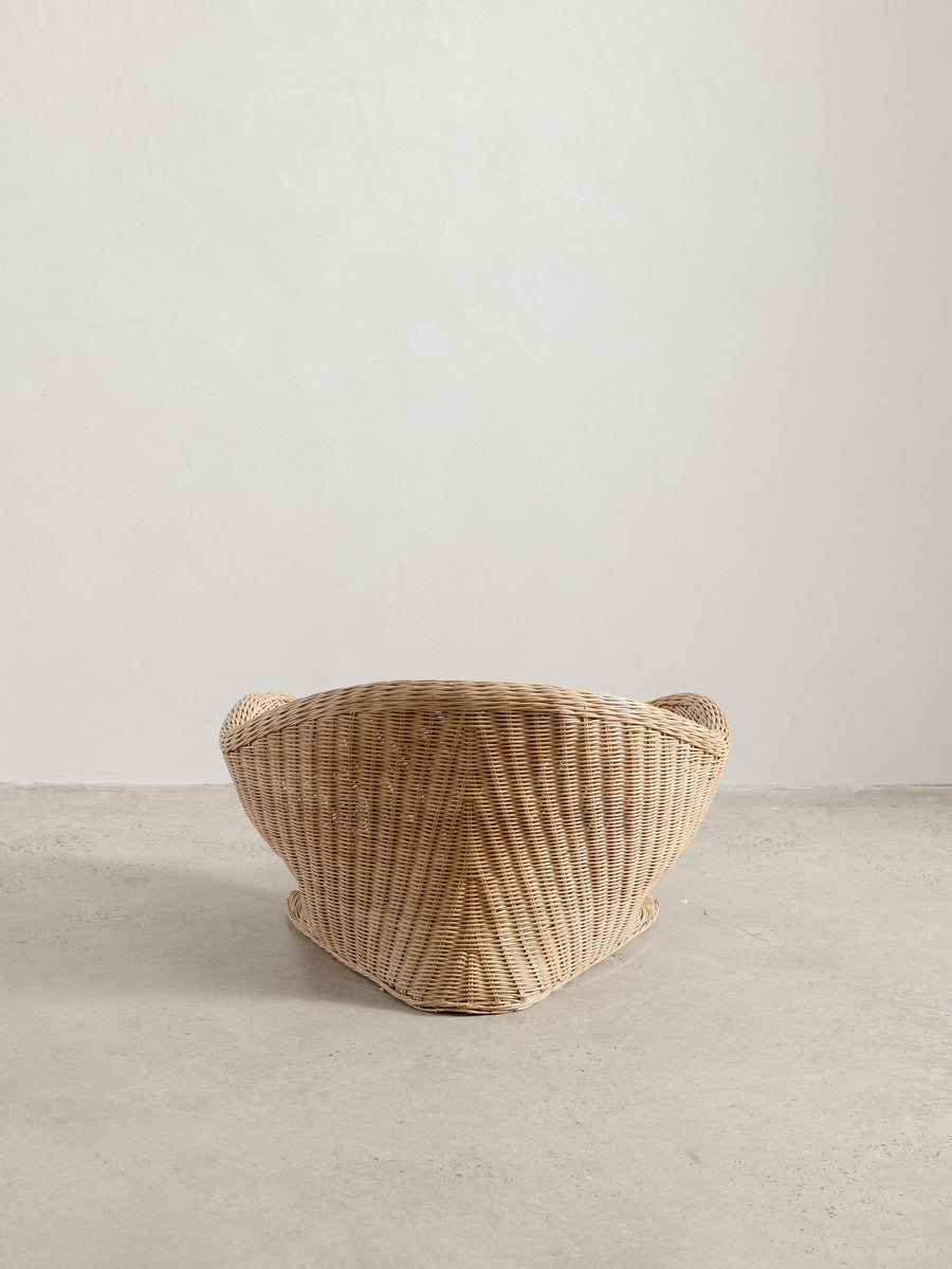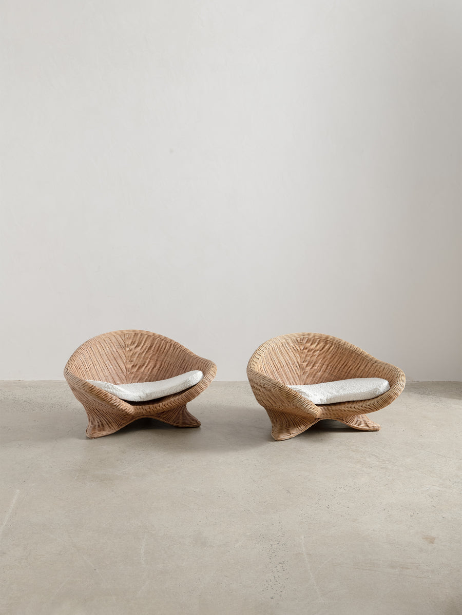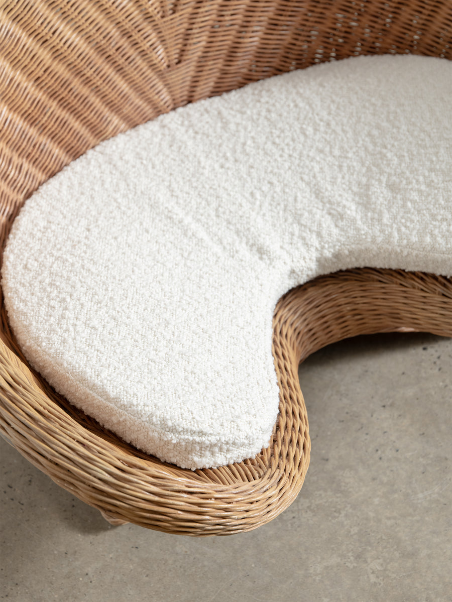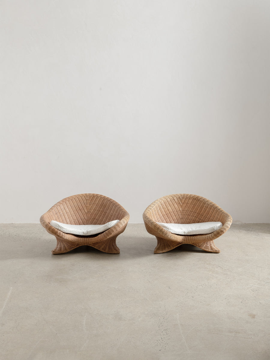 Low-set rattan chair by Vivai del Sud, a design combining the grandeur of Roman classicism and the clean sophistication of mid-century modernism.