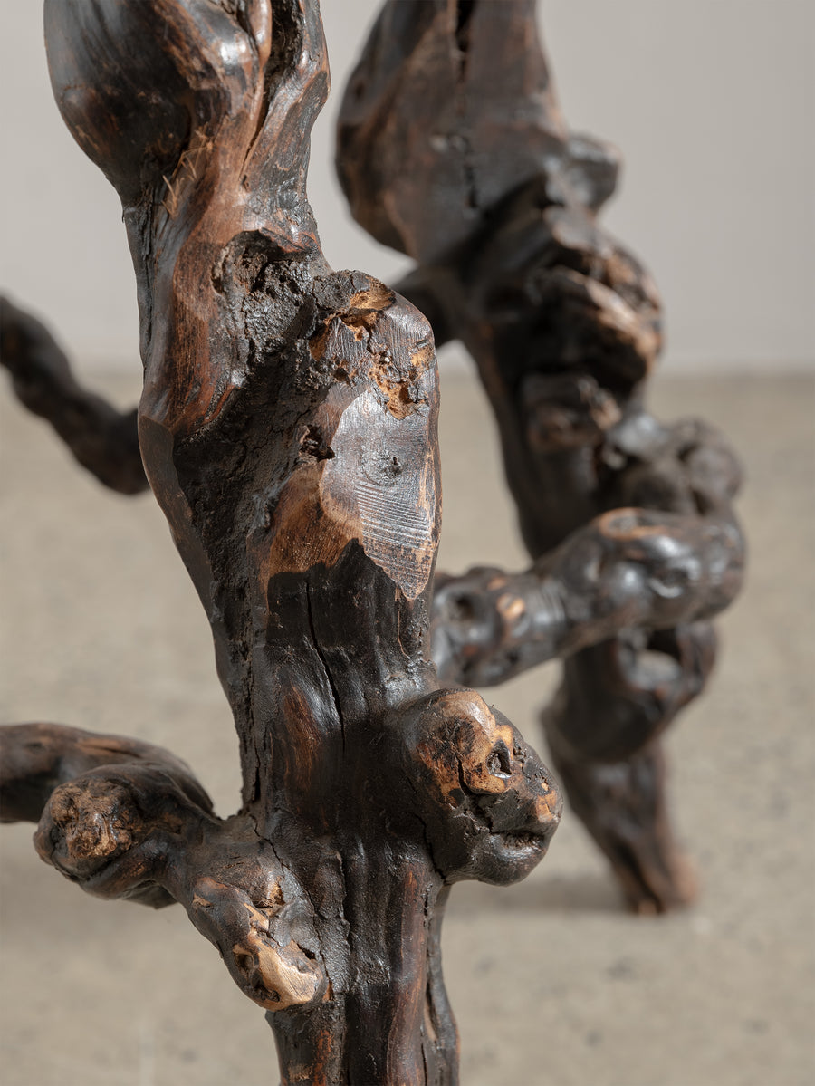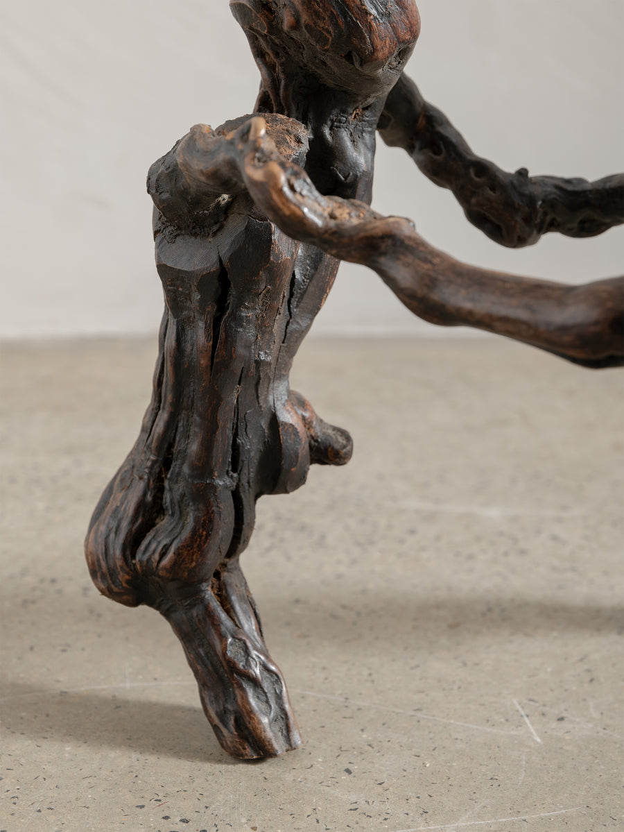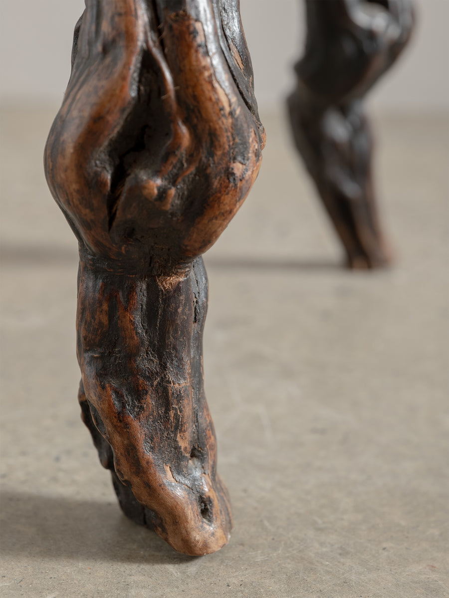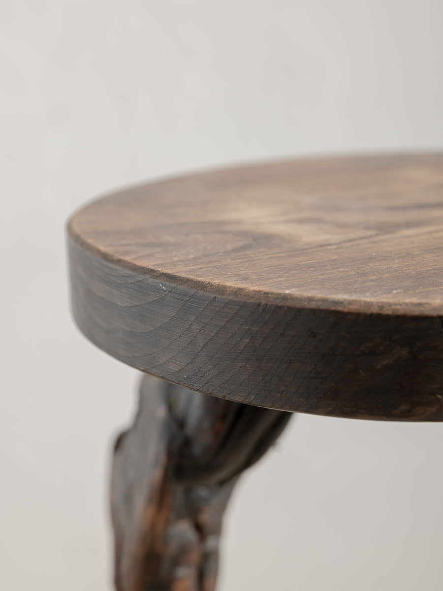 A striking 1970s timber stool that embodies the tension between organic form and brutalist design. Each piece is uniquely sculpted from solid wood, its twisted, root-like structure revealing the raw beauty of natural material shaped by hand. The irregular contours and richly textured surface bring depth and artistry to any space - equally suited as a counter stool, side table, or sculptural accent.