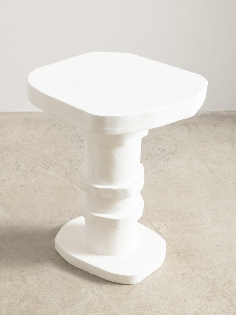 The Opus Side Table is crafted from the meticulous application of papier mache to each substrate before skillfully building up layers of plaster, each carefully sanded and repeated for a flawless finish. Each piece is truly one-of-a-kind with its handmade touch.