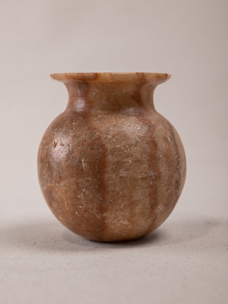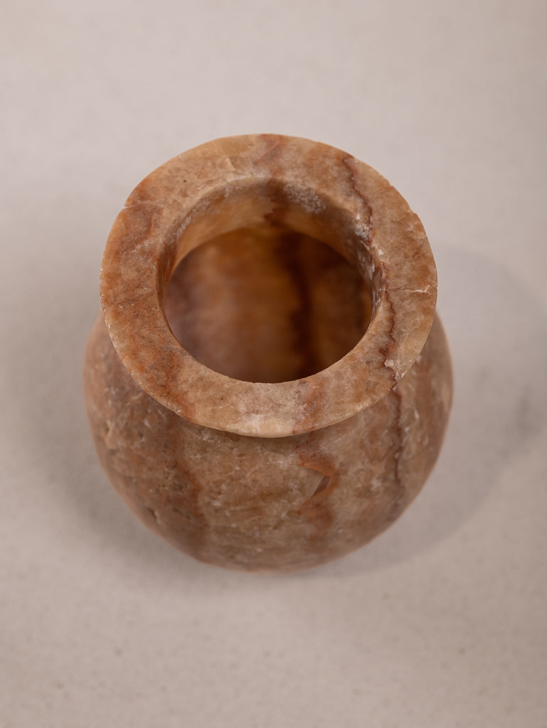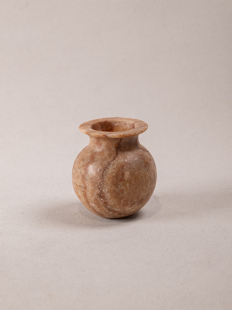 Discover the subtle allure of this petite antique alabaster vase, a timeless piece of quiet elegance. Its soft, creamy tones and naturally translucent finish capture the beauty of aged stone, each unique detail telling stories of its past. Small yet captivating, it adds a gentle touch of character to any space, whether as a standalone accent or paired with wild blooms. This vase is a piece of understated charm, a reminder of craftsmanship that honours simplicity and natural beauty.
