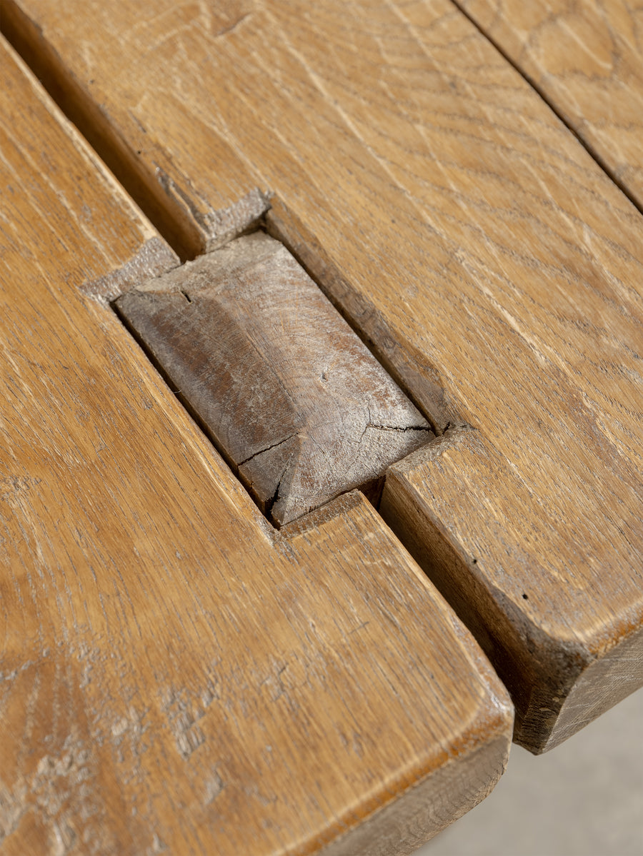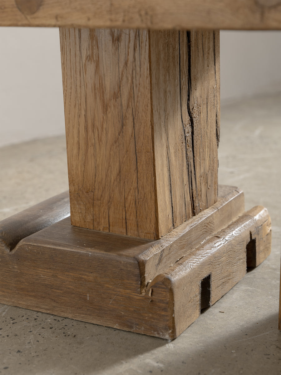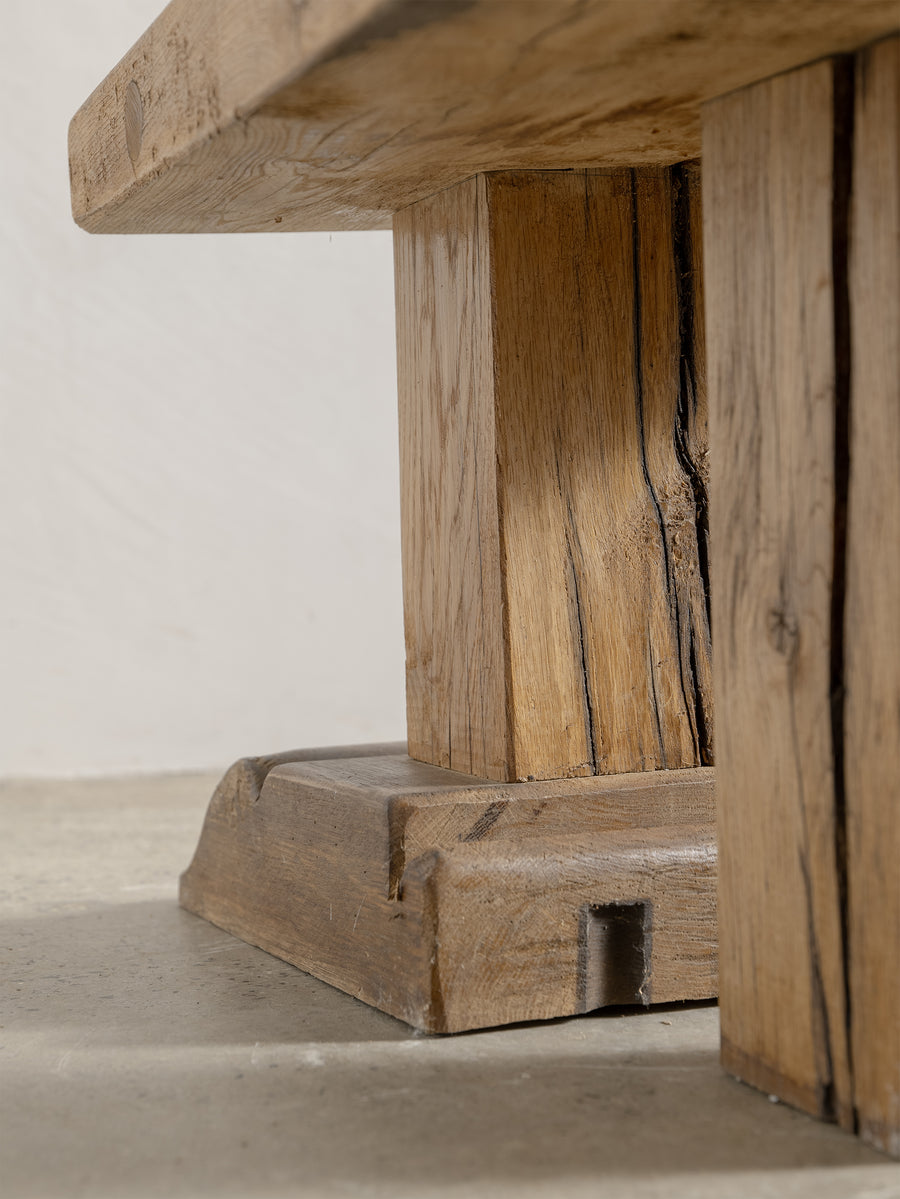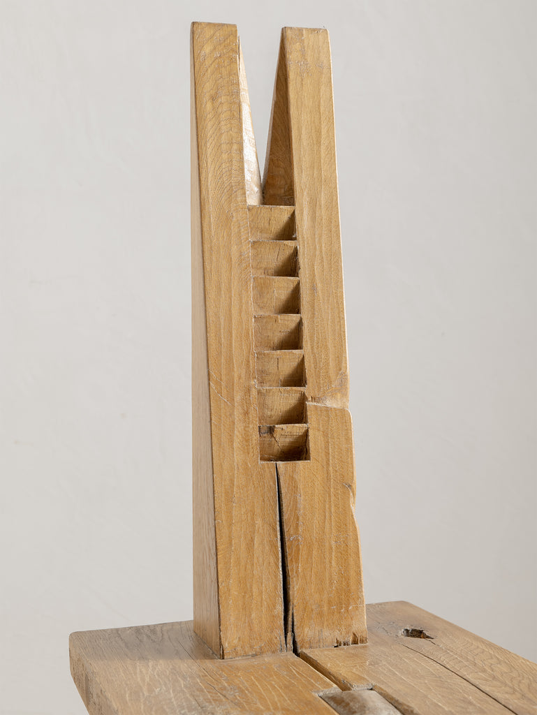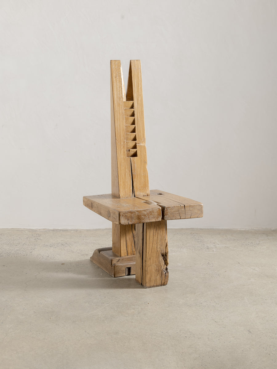 An artisan-made French timber chair, sculpted with a bold, architectural presence. Crafted from solid timber, its geometric form is balanced by the hand-carved detailing to the backrest, giving it both sculptural depth and textural character. Bearing the marks of the maker’s hand, the chair reflects a raw, elemental beauty. A statement piece that embodies the enduring traditions of French craftsmanship.