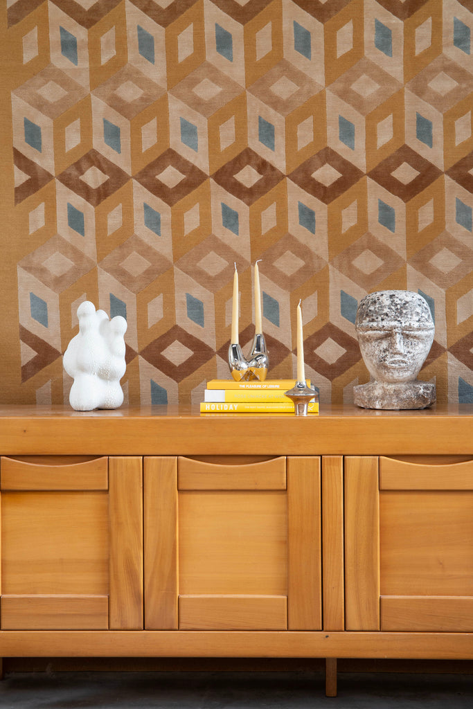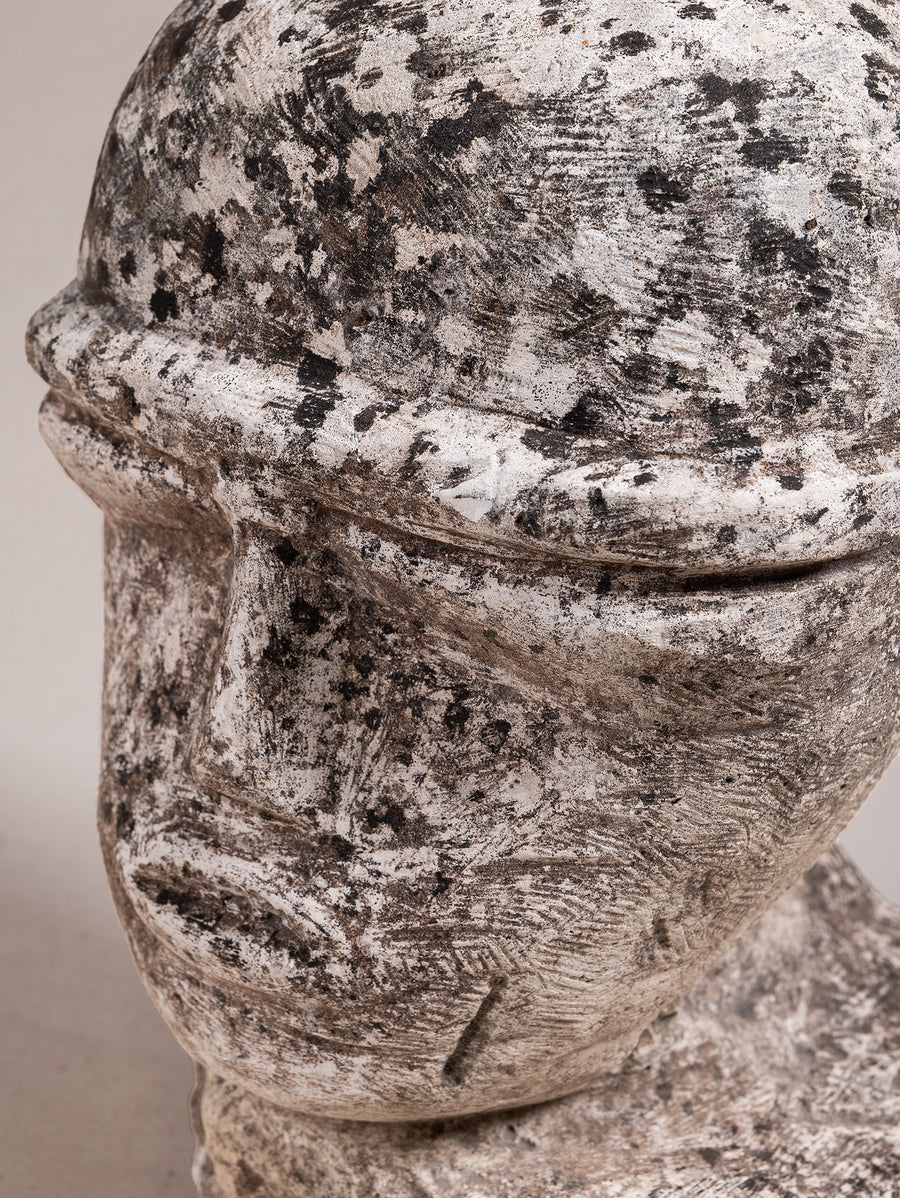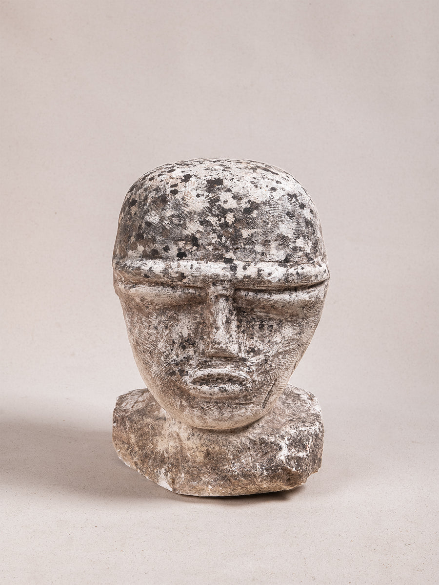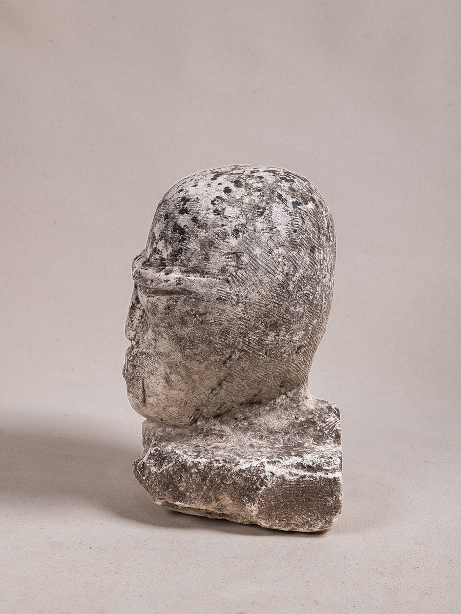 This early 20th century piece is hand carved in solid sandstone, with a textural finish that is accentuated by the aged discolouration of the stone.