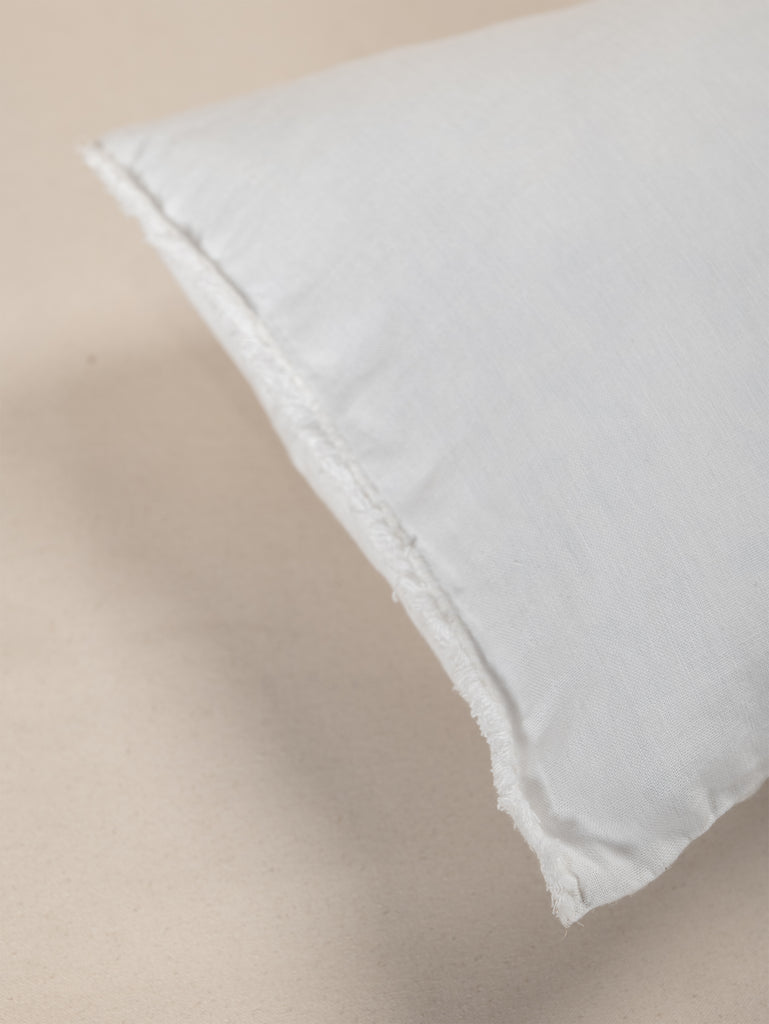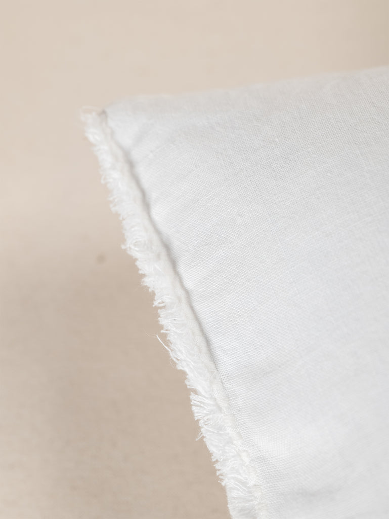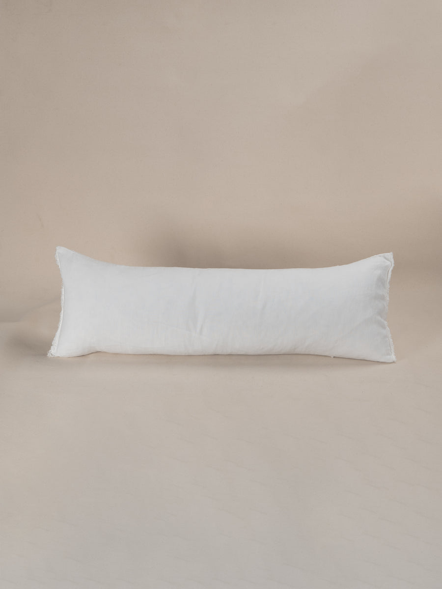 Embroidered Linen Lumbar Cushion, Chalk