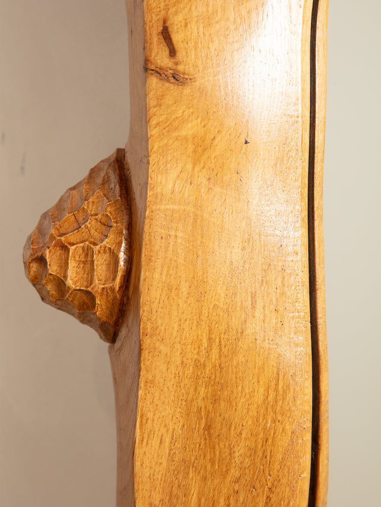 An organically shaped timber mirror that celebrates the beauty of natural form, reminiscent of 1970s French artisan design. Smoothly carved with soft, flowing lines, its sculptural frame brings warmth, texture, and a sense of artistry to the wall. The irregular silhouette and rich wood grain capture the spirit of hand-shaped craftsmanship - a timeless piece that bridges the raw elegance of nature with the refined sensibility of French design.