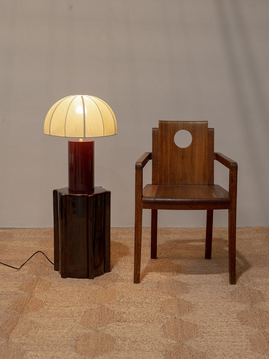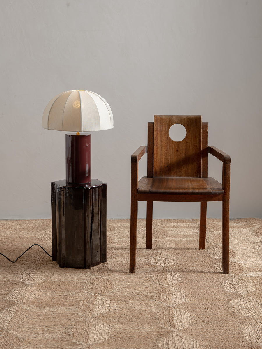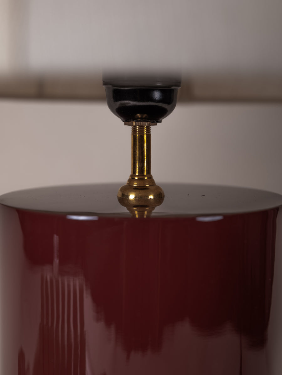 Designed in partnership with our longtime friends Oi Soi Oi, this sculptural table lamp brings warmth and quiet elegance to any space. The rich Bordeaux lacquered base is built up through multiple layers for depth and a lustrous finish. A soft, neutral raw silk shade takes on a playful mushroom form, diffusing a gentle, organic glow. Finished with a delicate touch of gold at the lamp holder.