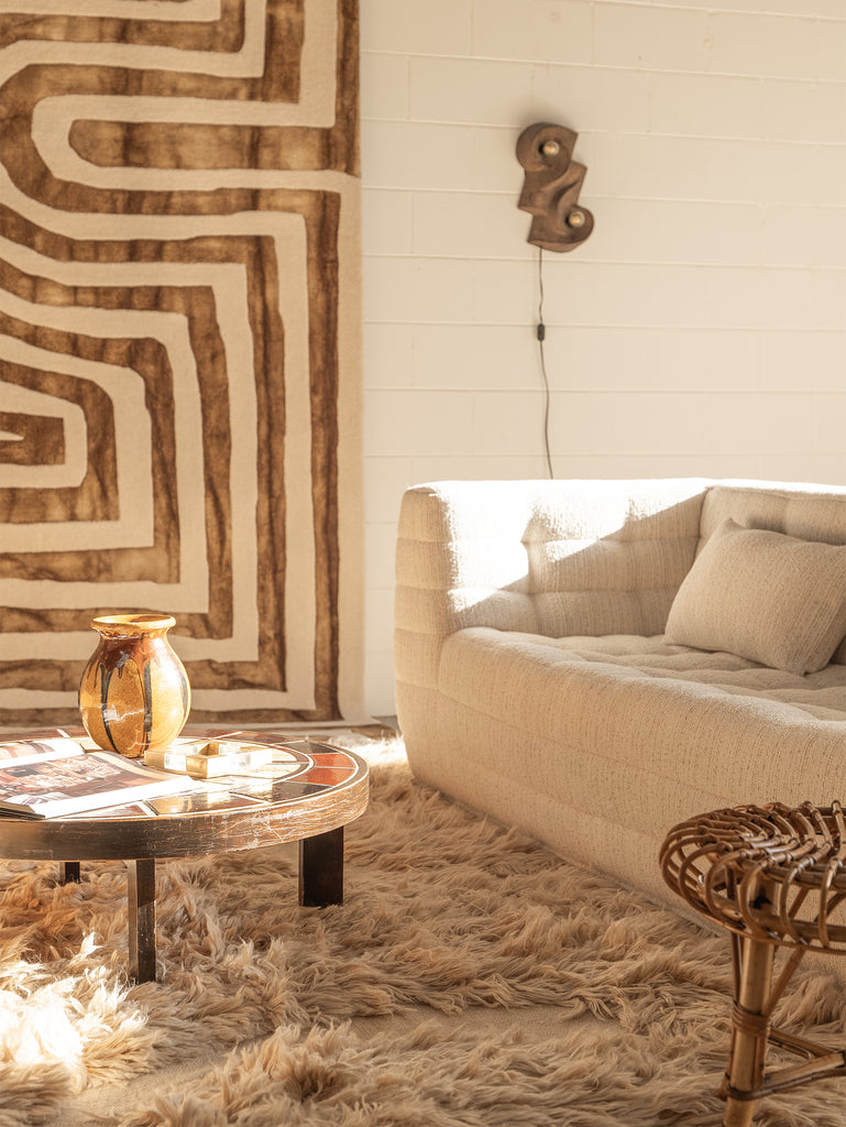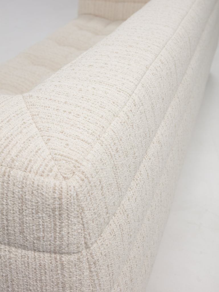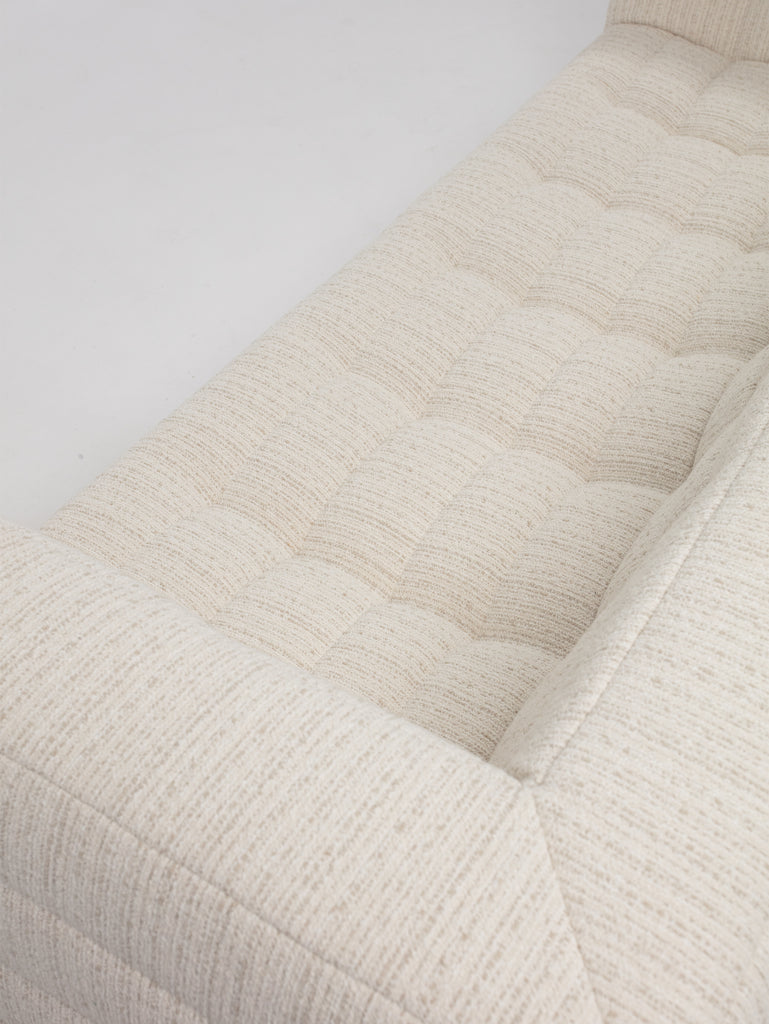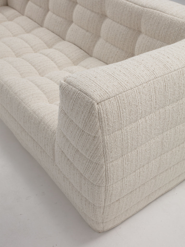 Upholstered in a soft cotton and wool blend, it brings a natural warmth and textured depth to any living space.
