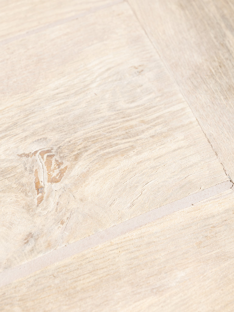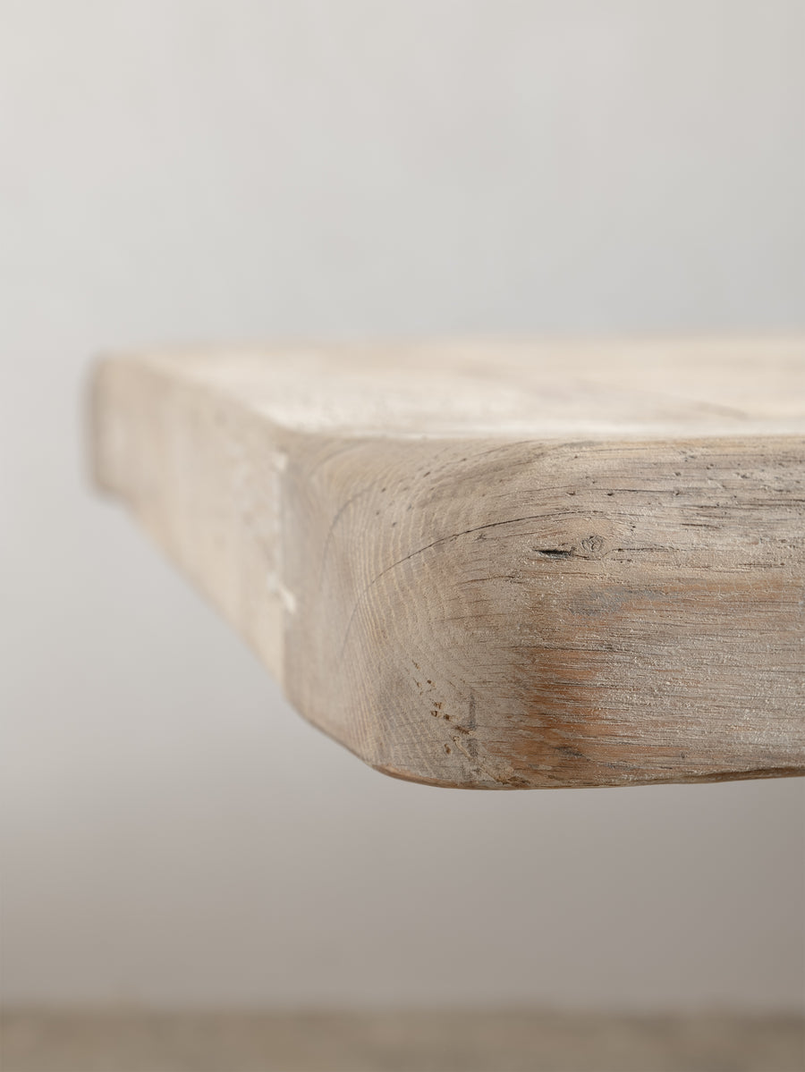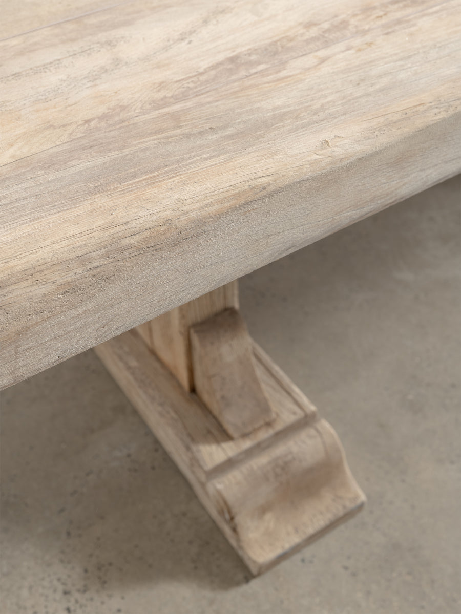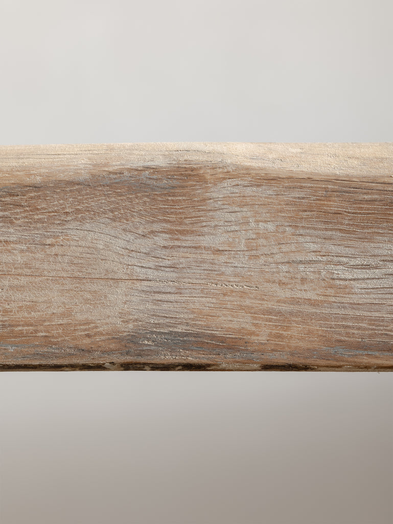 A large French oak farmhouse table with a super solid top, sturdy legs and cross beam support. Early 20th century in origin, it has been carefully stripped back to reveal the raw beauty of the timber, leaving a soft, tactile finish that highlights its natural grain and timeworn character. Both generous and grounding in scale, this piece carries the quiet strength of farmhouse craftsmanship while offering a timeless, versatile centrepiece for the dining space.