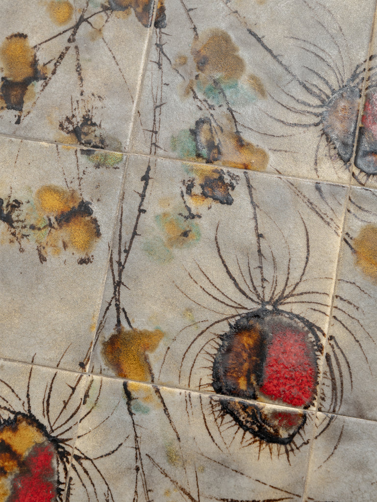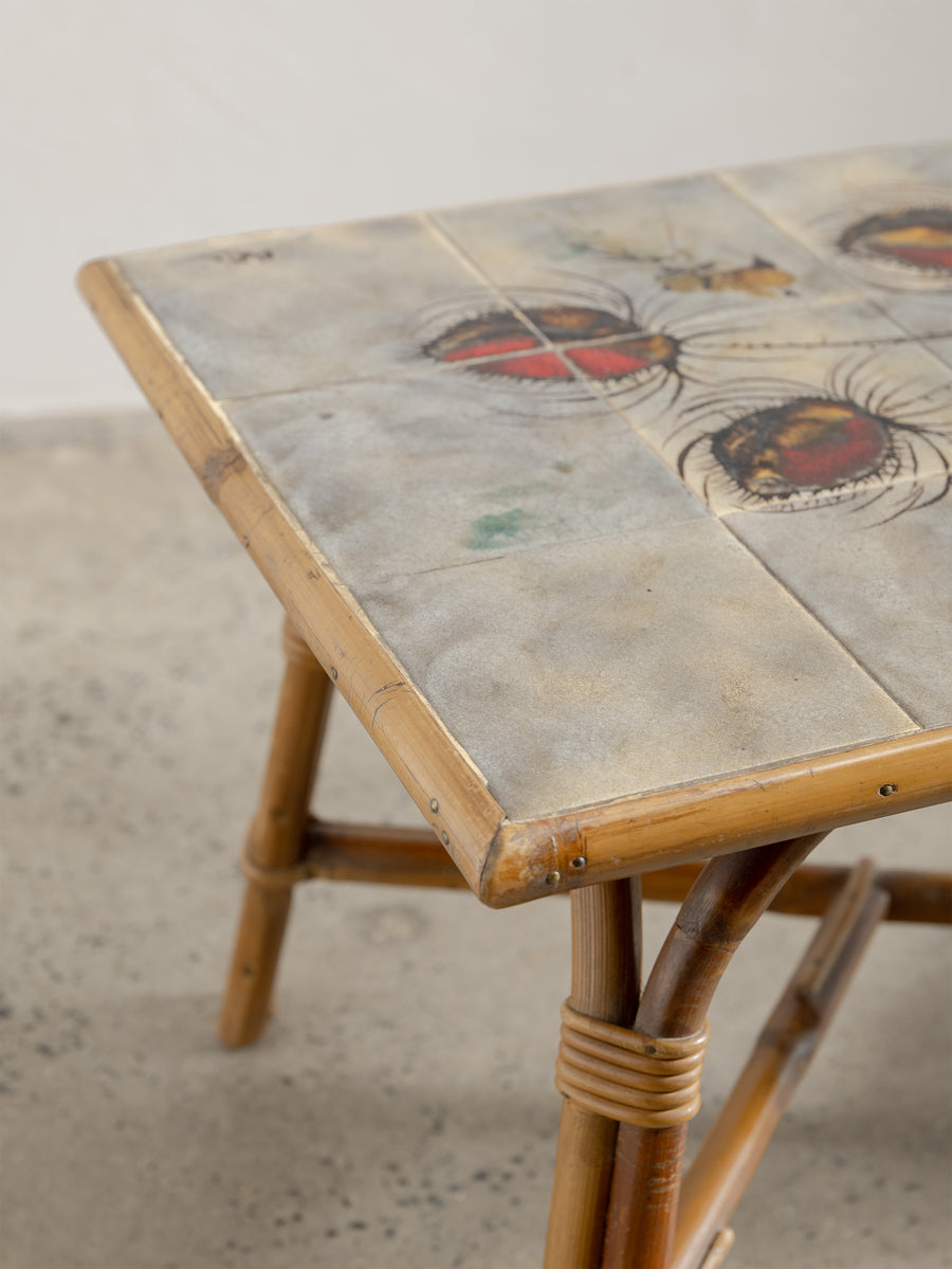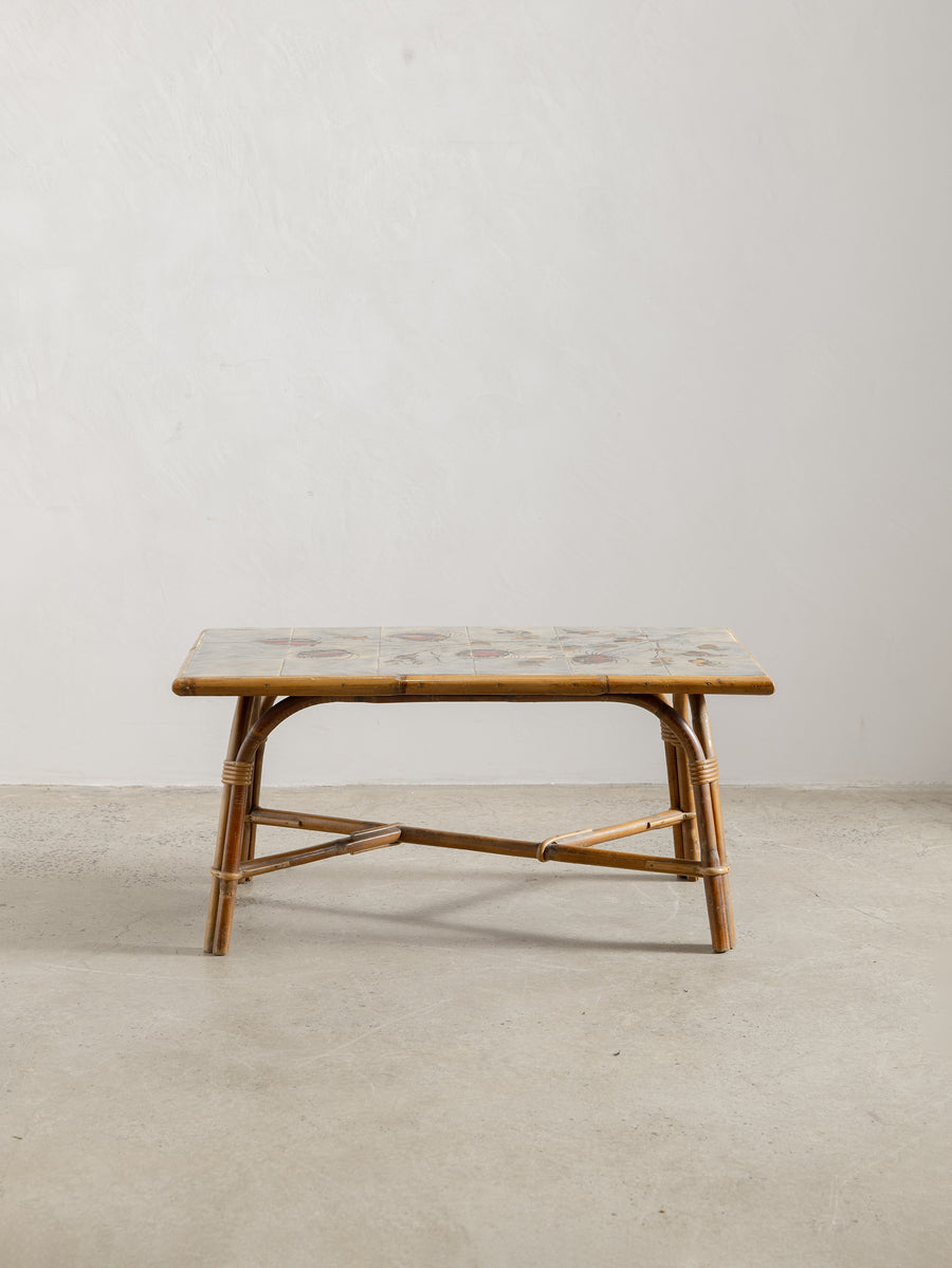 1960s Ceramic Tiled Cane Coffee Table by Audoux Minet & Chassin