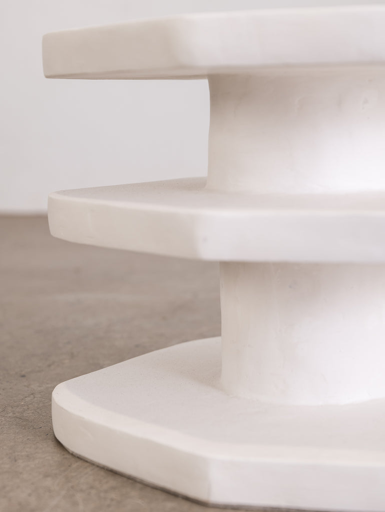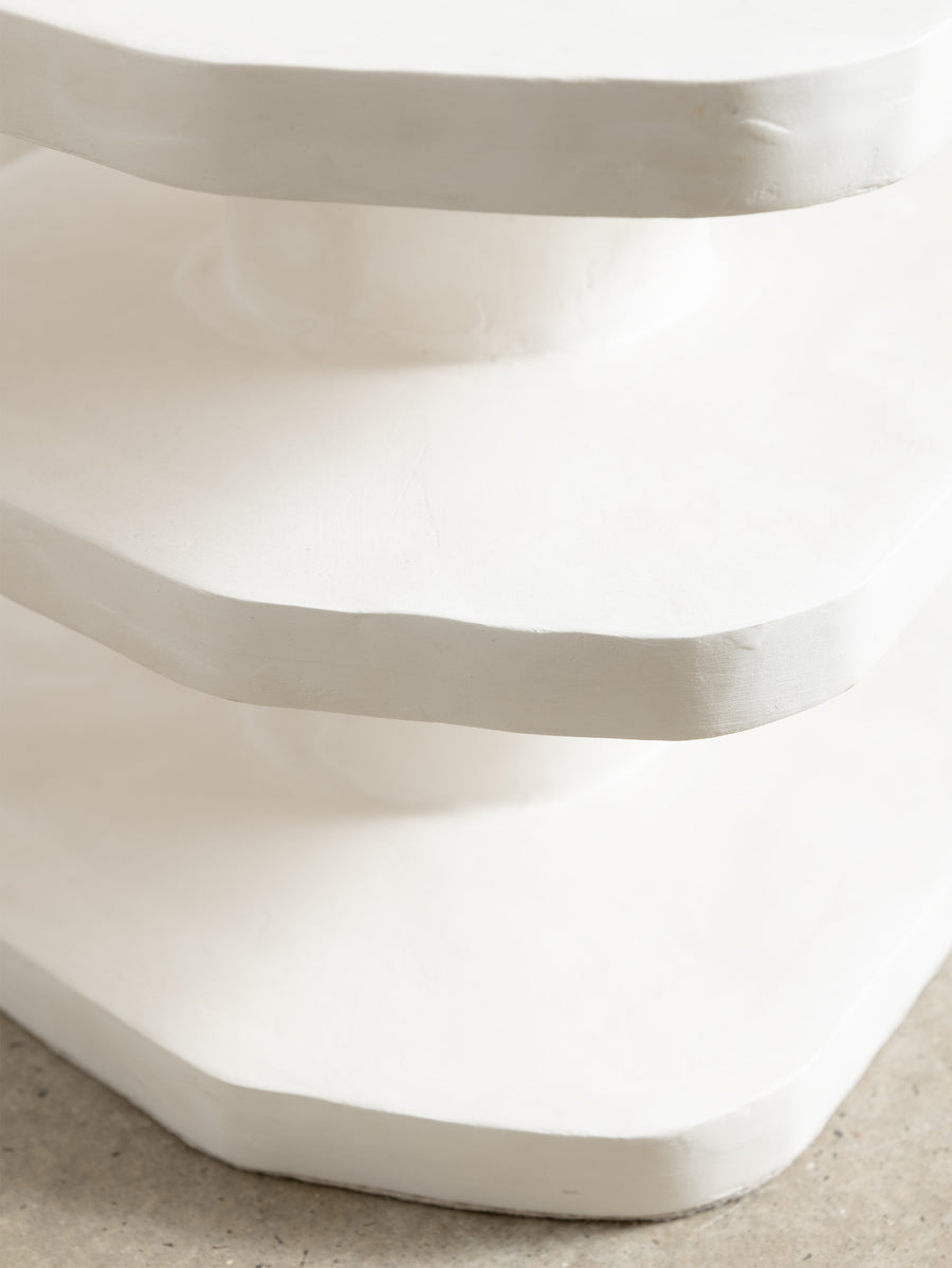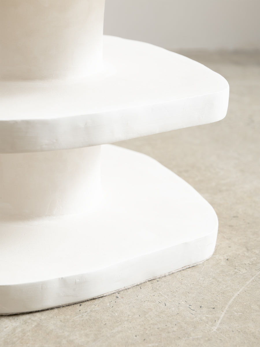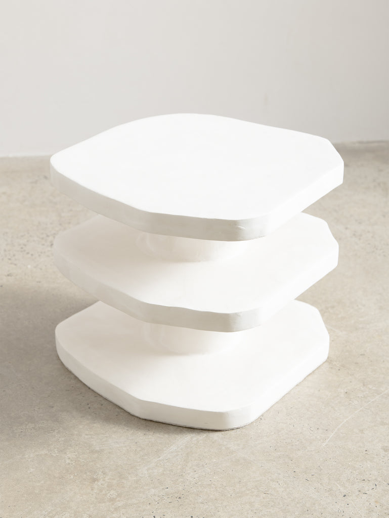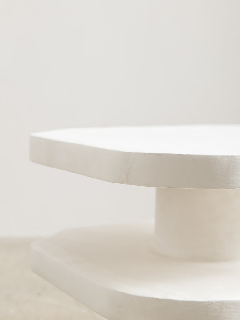 The Nova Side Table is crafted from the meticulous application of papier mache to each substrate before skillfully building up layers of plaster, each carefully sanded and repeated for a flawless finish. Each piece is truly one-of-a-kind with its handmade touch.