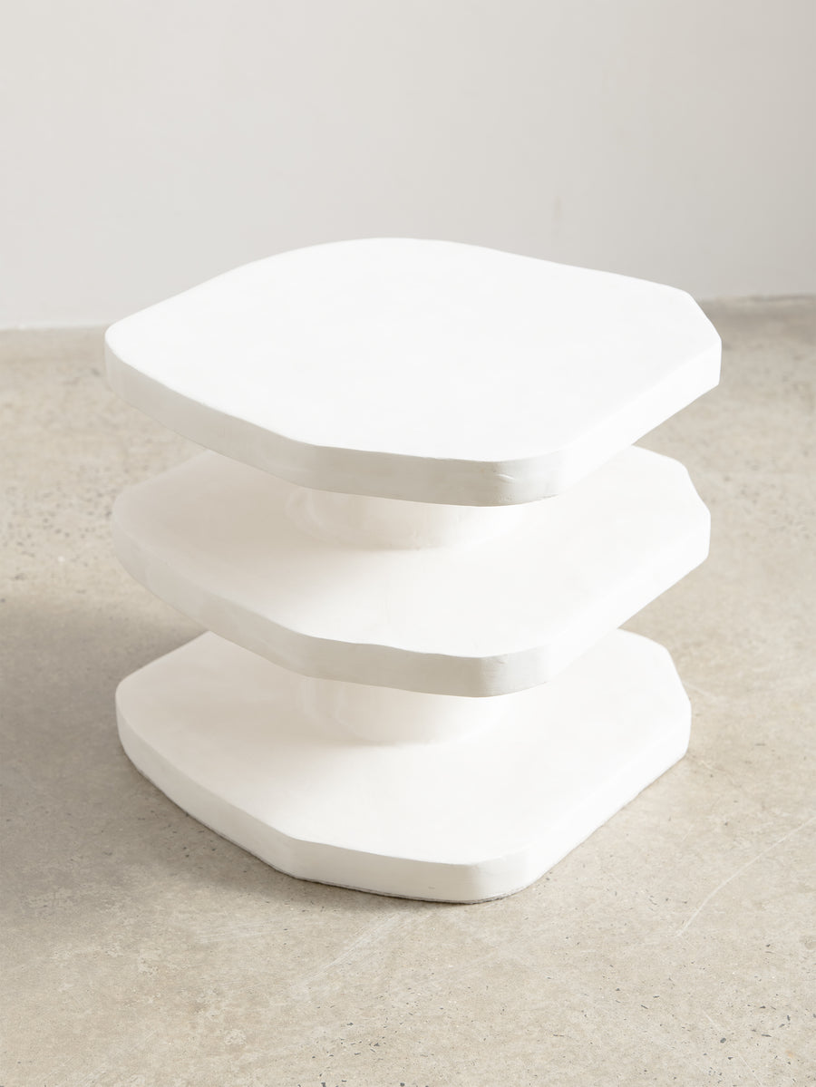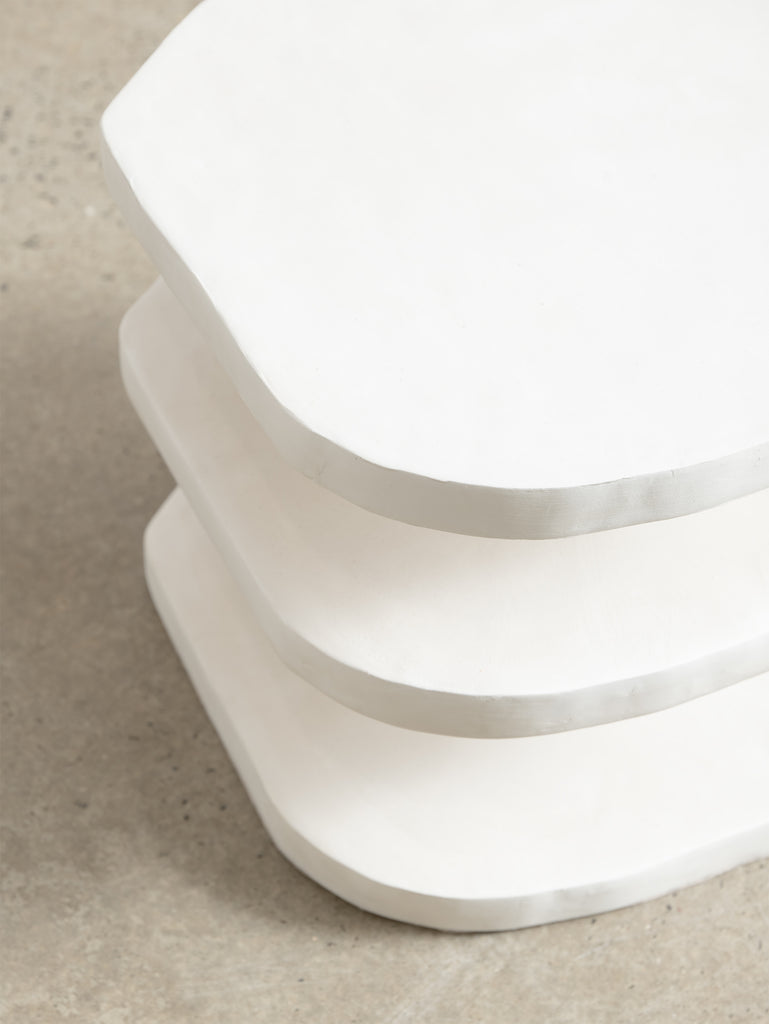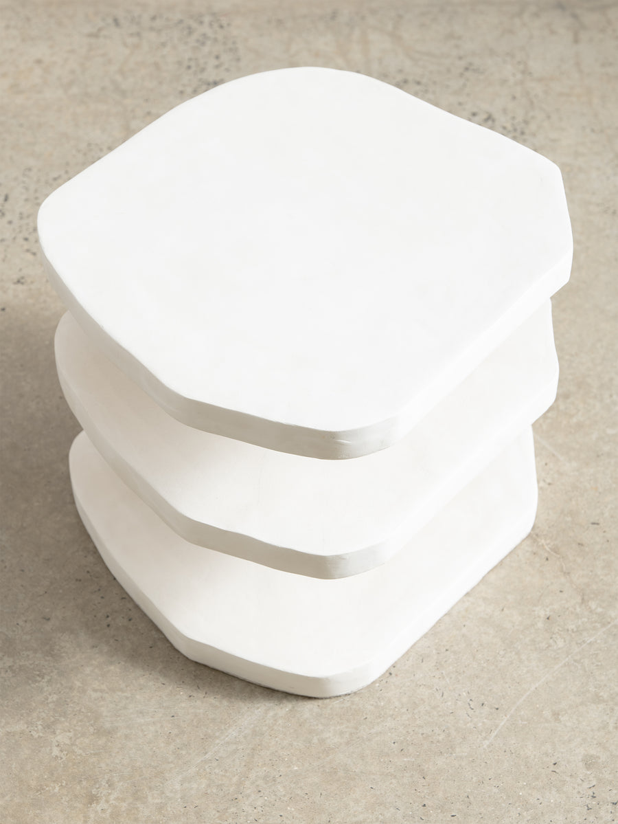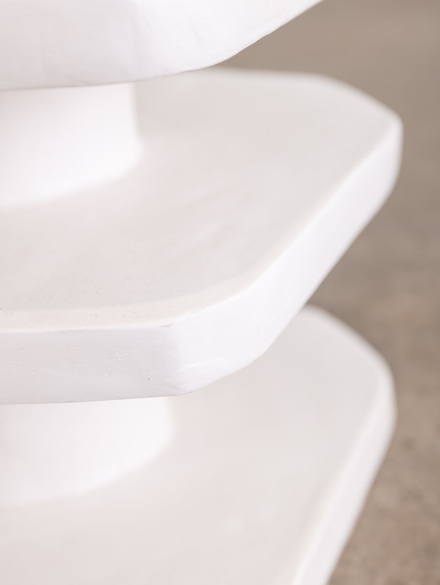 The Nova Side Table is crafted from the meticulous application of papier mache to each substrate before skillfully building up layers of plaster, each carefully sanded and repeated for a flawless finish. Each piece is truly one-of-a-kind with its handmade touch.