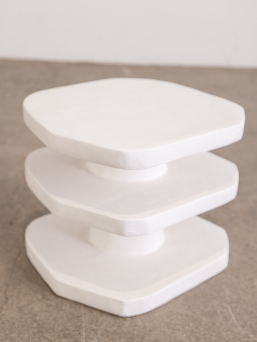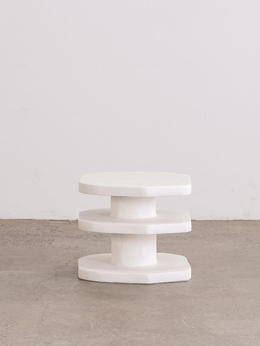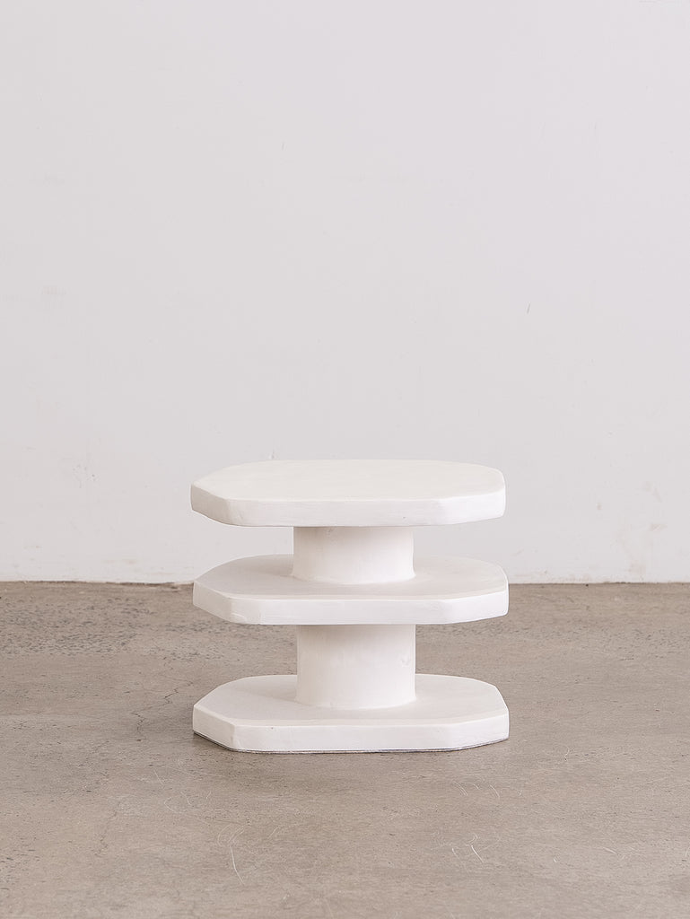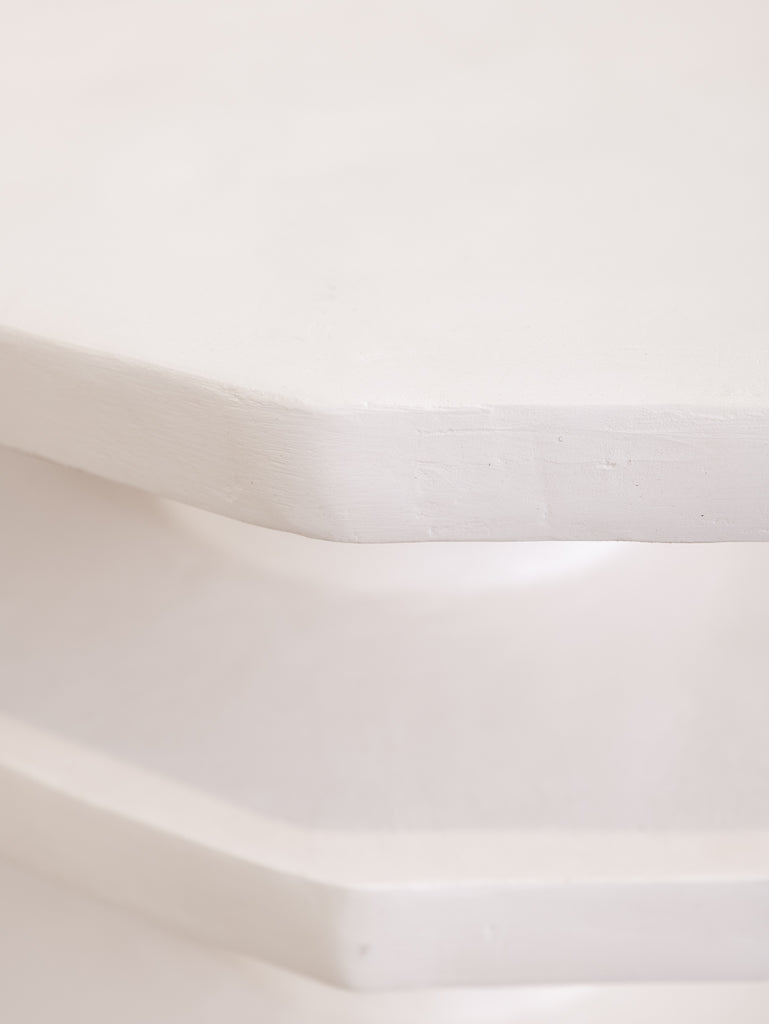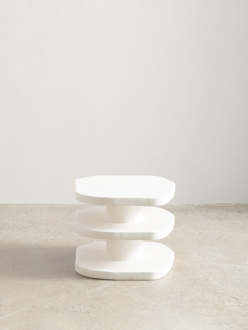The Nova Side Table is crafted from the meticulous application of papier mache to each substrate before skillfully building up layers of plaster, each carefully sanded and repeated for a flawless finish. Each piece is truly one-of-a-kind with its handmade touch.