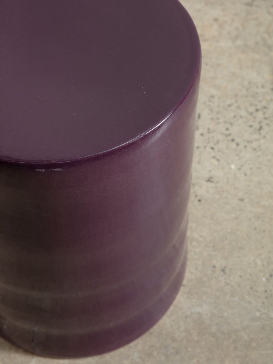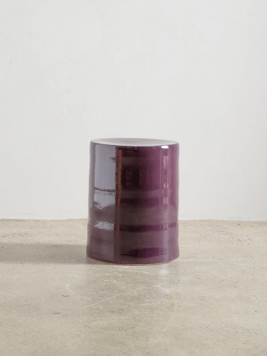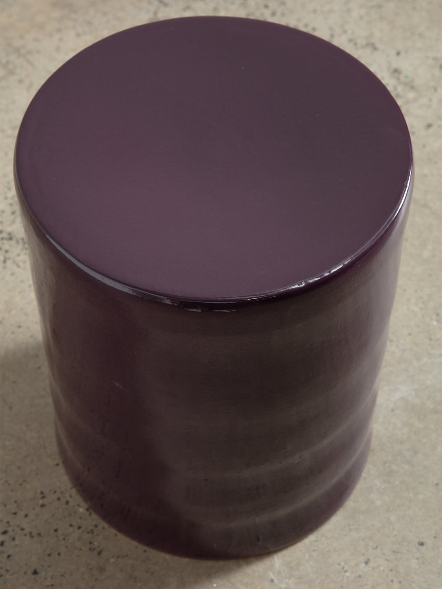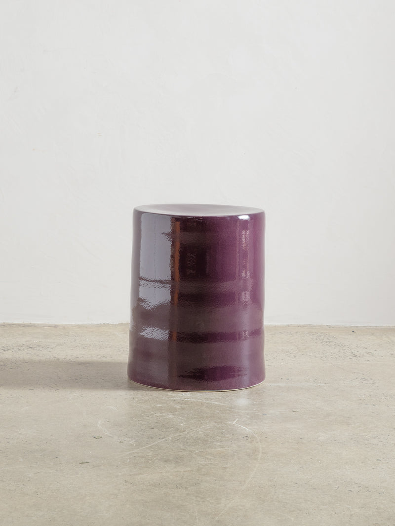 Crafted from glazed stoneware in a purple finish, this versatile piece serves as both a stylish side table and a sturdy stool, offering both aesthetic appeal and practical functionality.