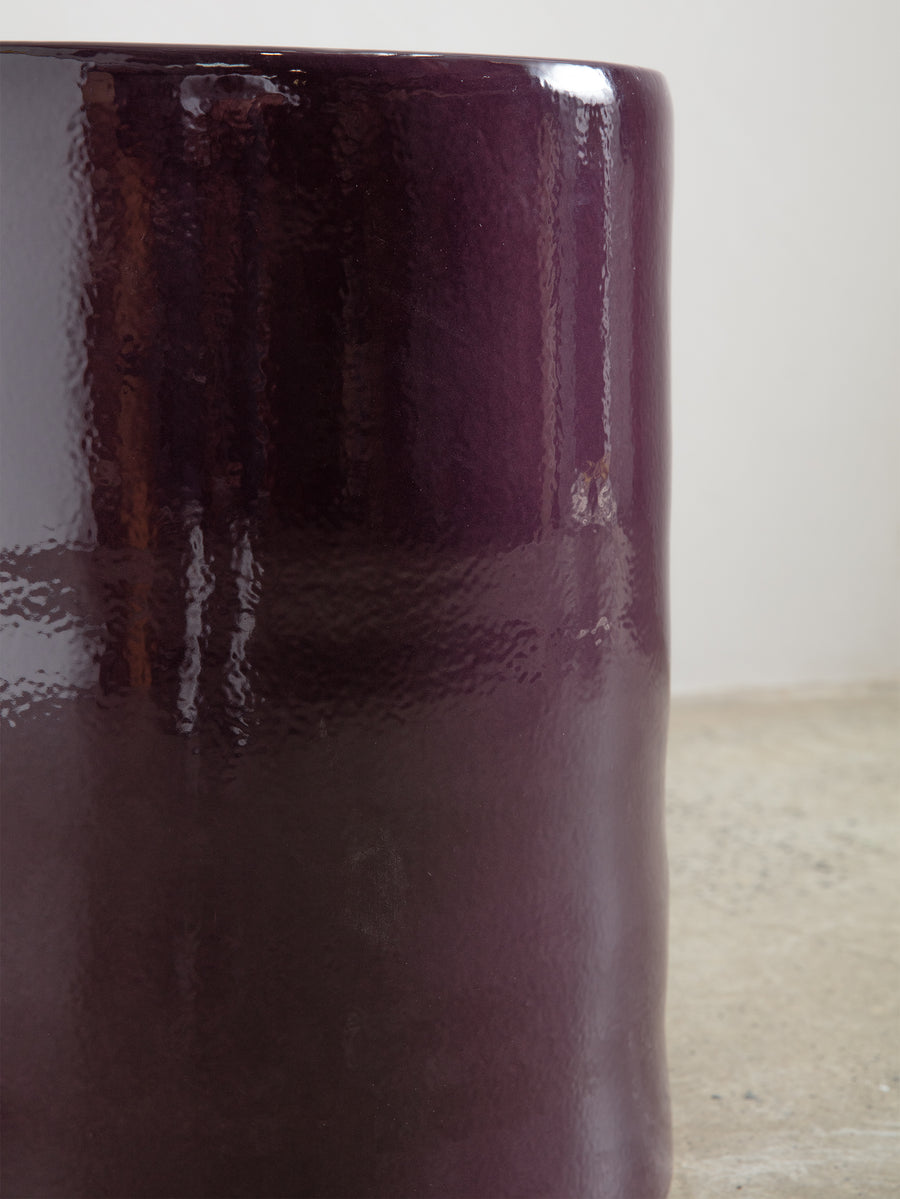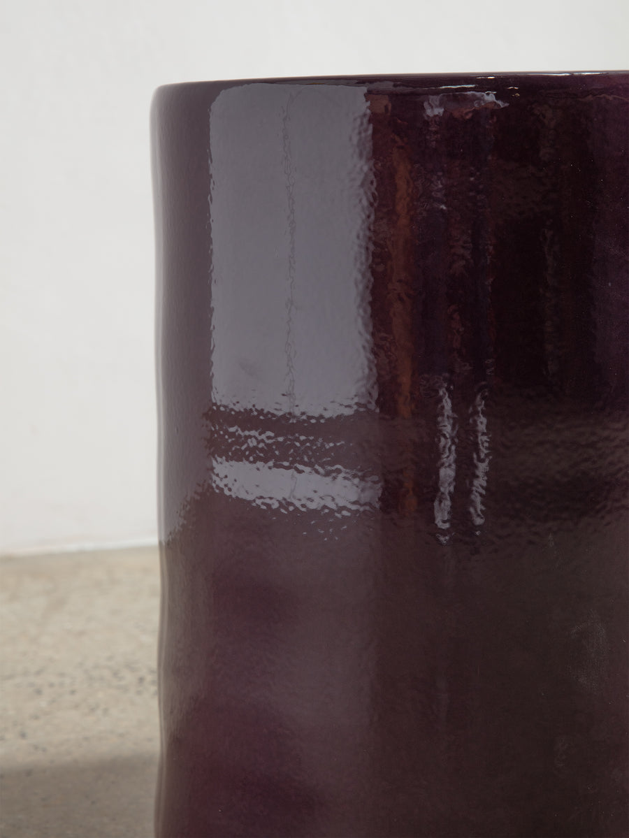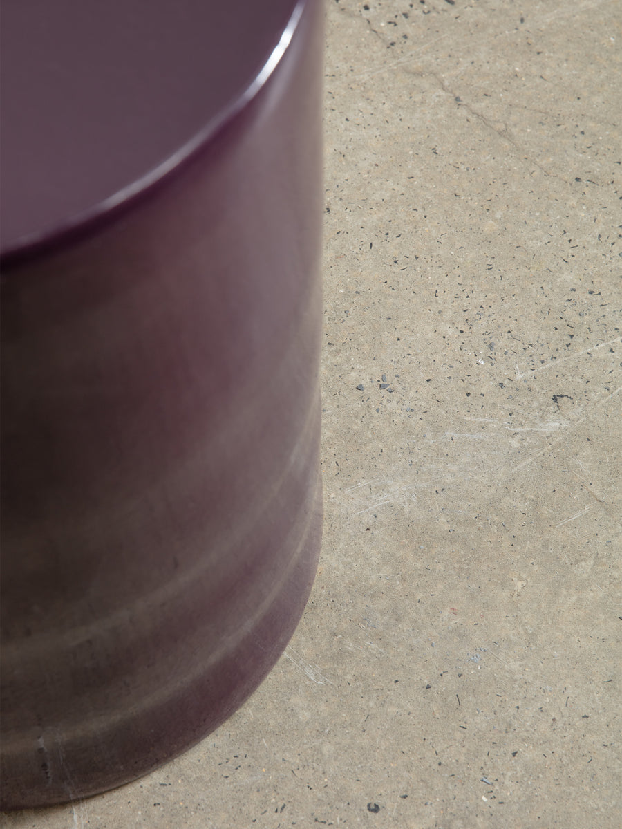 Crafted from glazed stoneware in a purple finish, this versatile piece serves as both a stylish side table and a sturdy stool, offering both aesthetic appeal and practical functionality.