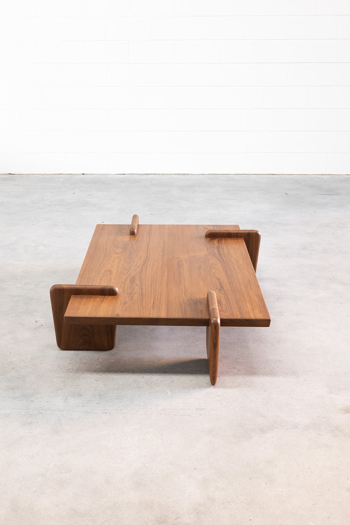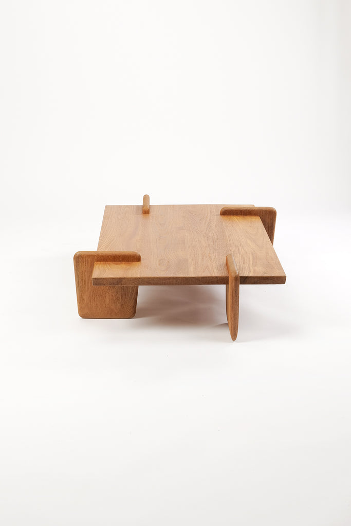 The x+l Coffee Table is a low coffee table made entirely from solid teak wood. The legs are skilfully shaped by hand and are an homage to the architectural elements found in Le Corbusier’s modernist buildings in Chandigarh.