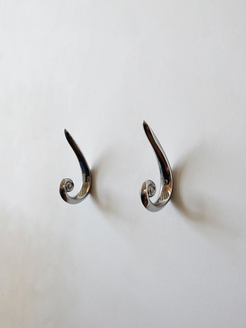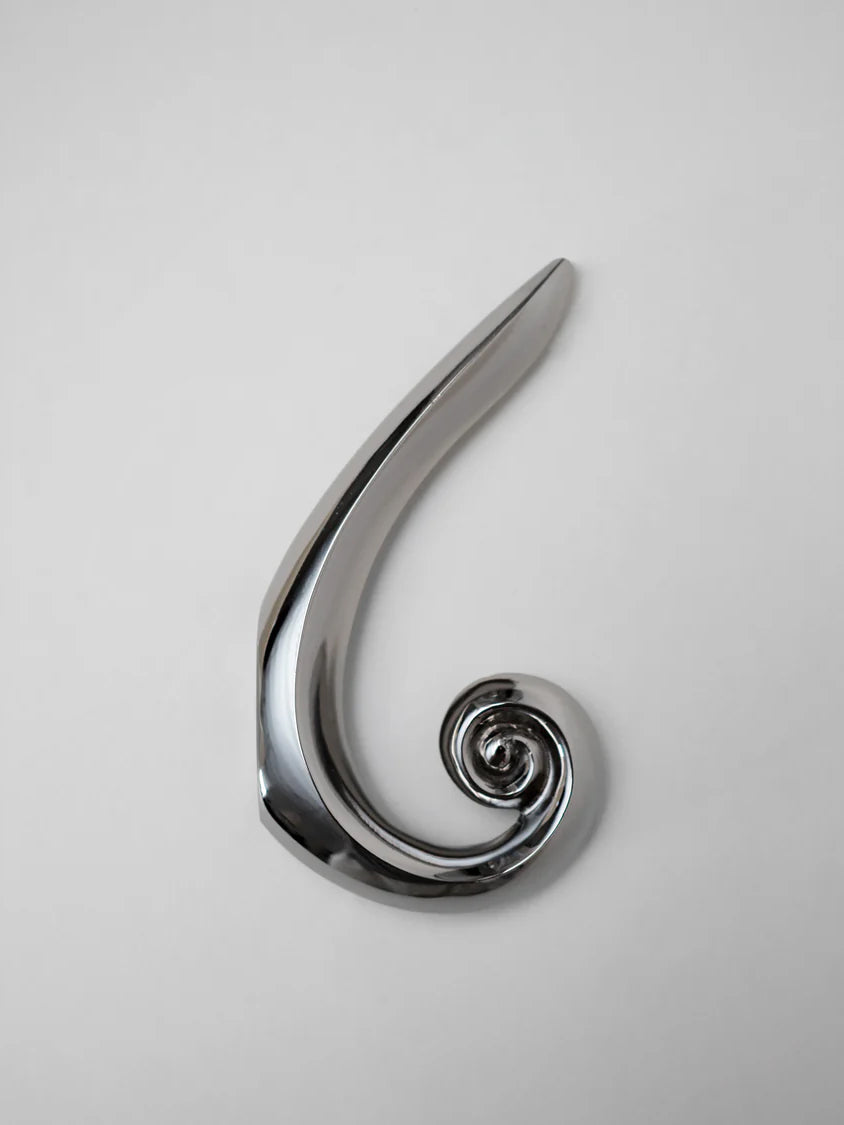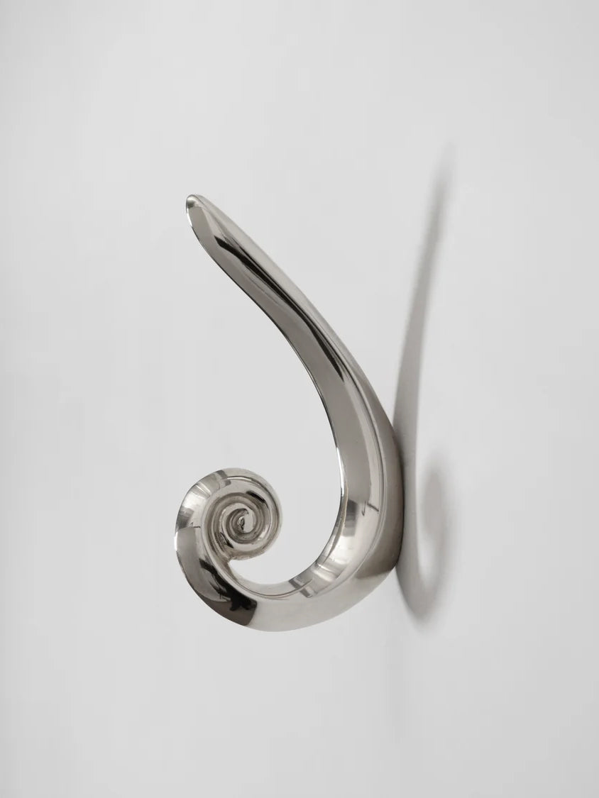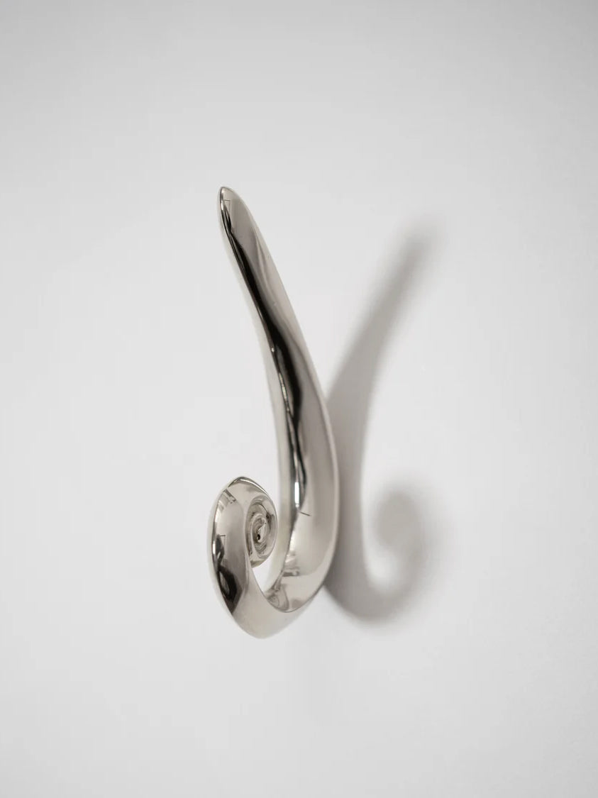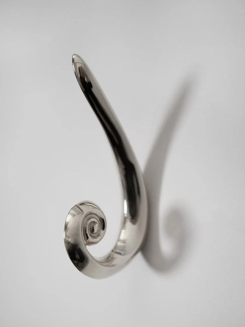 Originally shaped by hand by Danish artist Rebecca Hein, each piece carries subtle traces of the maker’s touch. Cast in solid metal using the traditional sandcasting technique, every hook is then polished by hand to reveal its unique surface. Natural variations, including small black specks or fine grain, are part of the process and serve as a reminder of its artisanal origin.