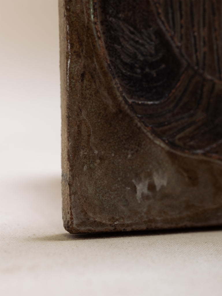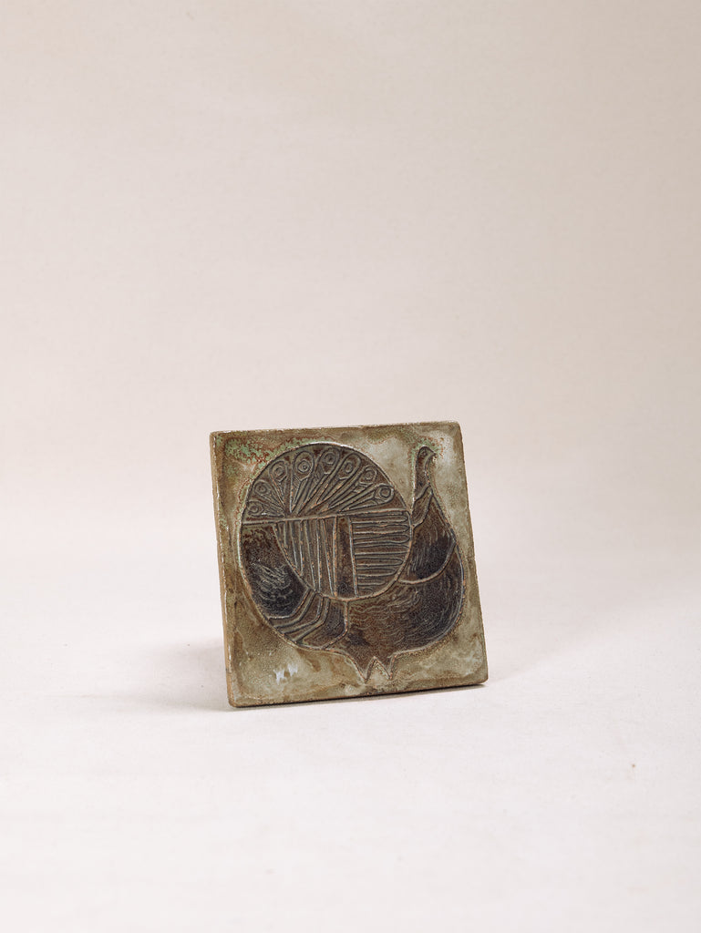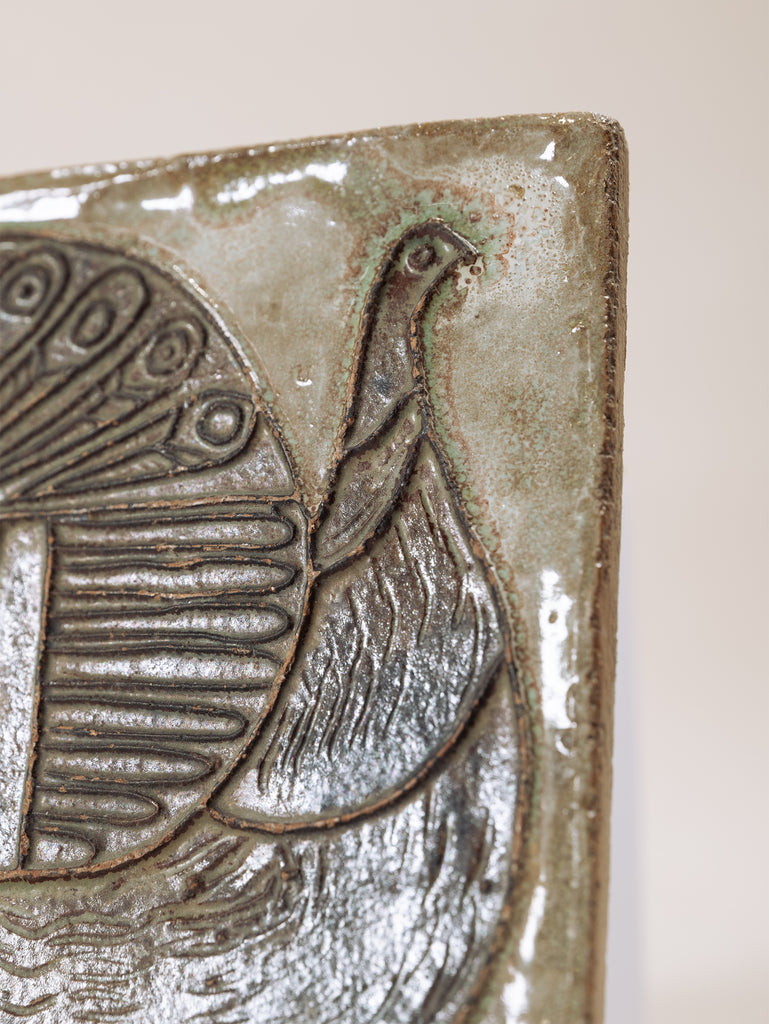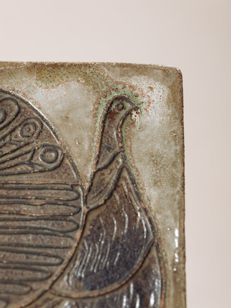 Created by Roland Zobel for Les Cyclades Anduze, this ceramic tile captures the refined artistry of French mid-century design. The hand-carved relief depicts a stylised bird, rendered in earthy glazes of olive and umber that softly catch the light. Both graphic and tactile, it reflects Zobel’s signature balance between modern abstraction and natural form. Displayed on its own or as part of a collection, it brings quiet character and craftsmanship to any space.