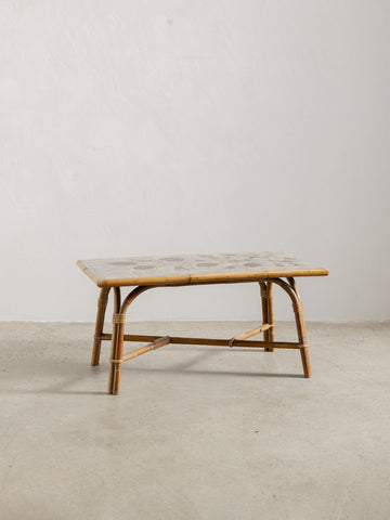 1960s Ceramic Tiled Cane Coffee Table by Audoux Minet & Chassin