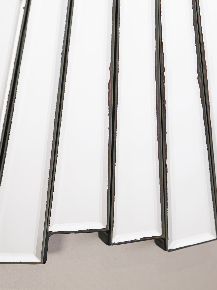 Radiating timeless elegance, this large Italian mirror from the 1980s is a true statement piece. Its embossed ray design creates an exquisite interplay of light and shadow, bringing a sense of movement and depth to your space. The craftsmanship captures the bold sophistication of the era, while its understated glamour ensures versatility in any interior.